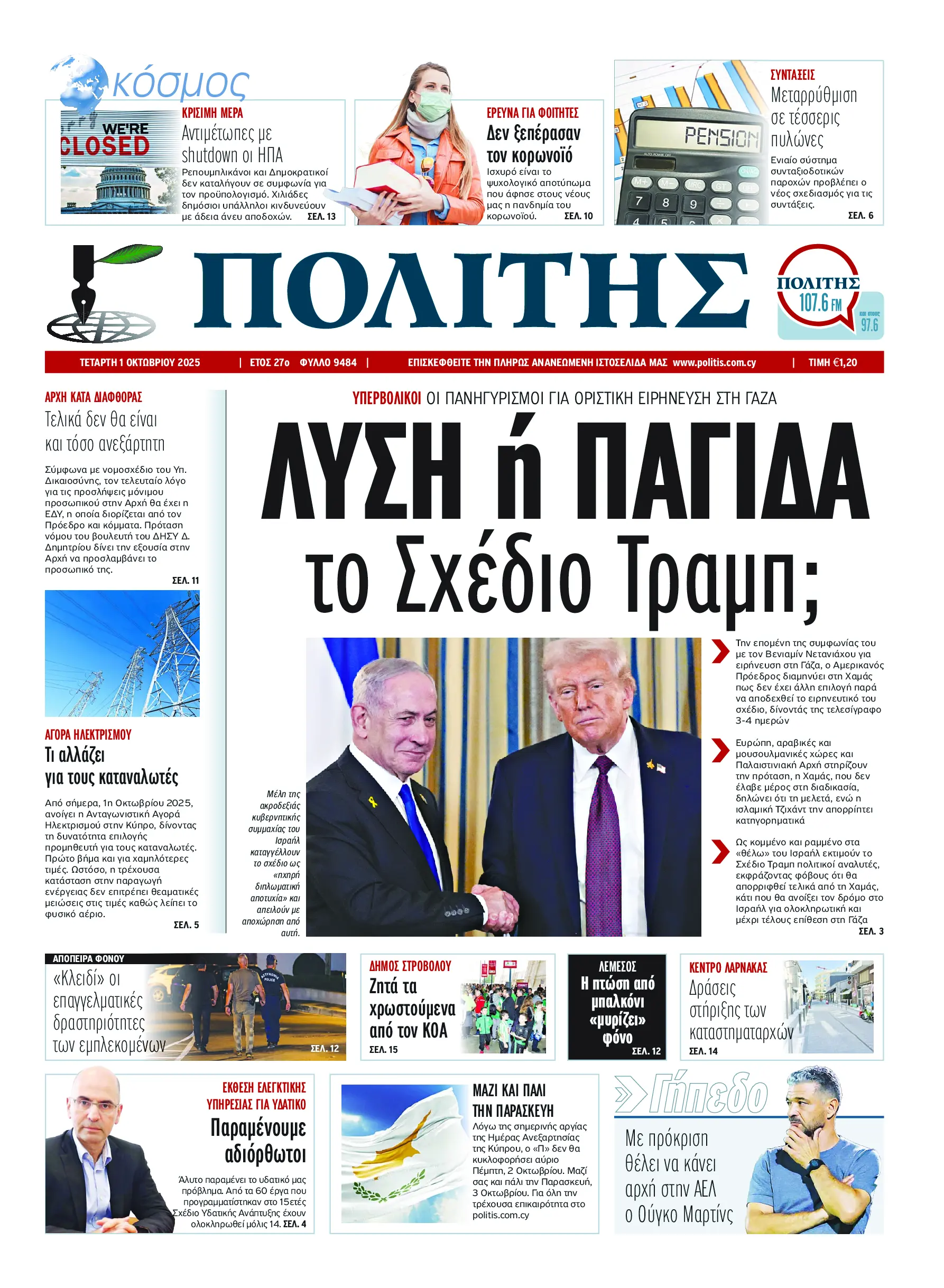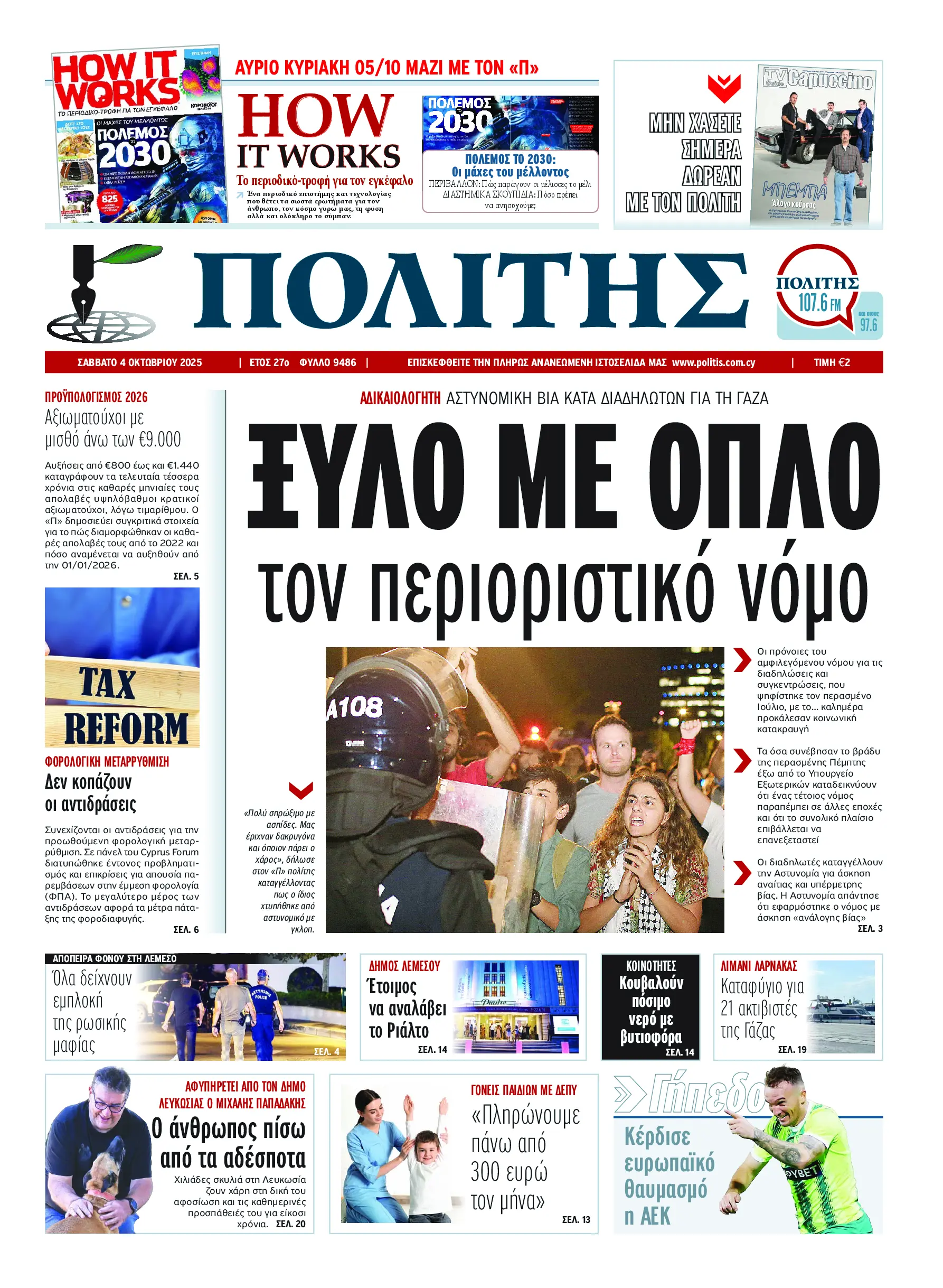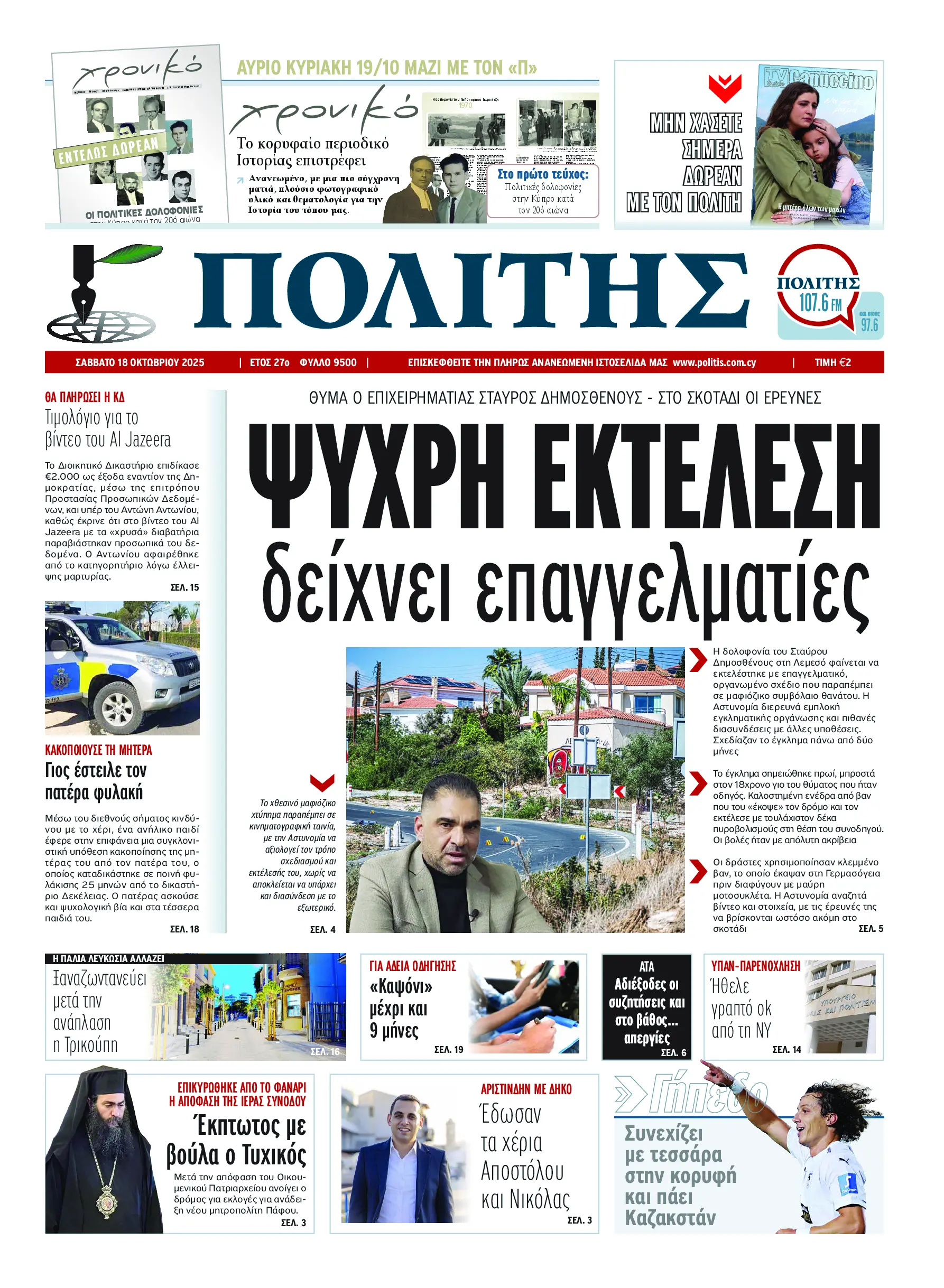 Σας καλωσορίζουμε στην Ψηφιακή Έκδοση της εφημερίδας «ΠΟΛΙΤΗΣ» σε ηλεκτρονική έκδοση στο διαδίκτυο. Η Ψηφιακή Έκδοση του «Π» διατηρεί τη μορφή και την αισθητική της εφημερίδας και είναι διαθέσιμη συνδρομητικά στην οθόνη σας, το κινητό και το tablet σας, από τις 05.00 το πρωί καθημερινά.