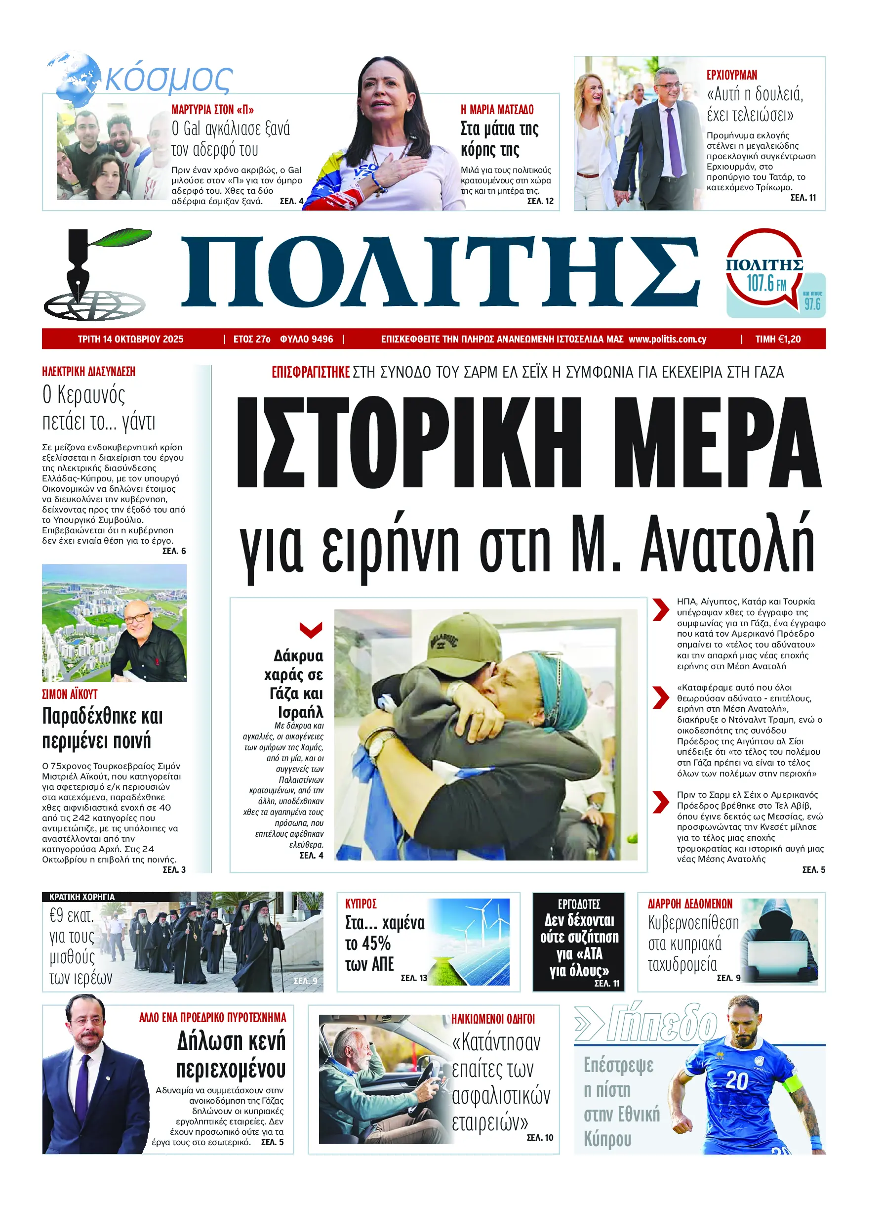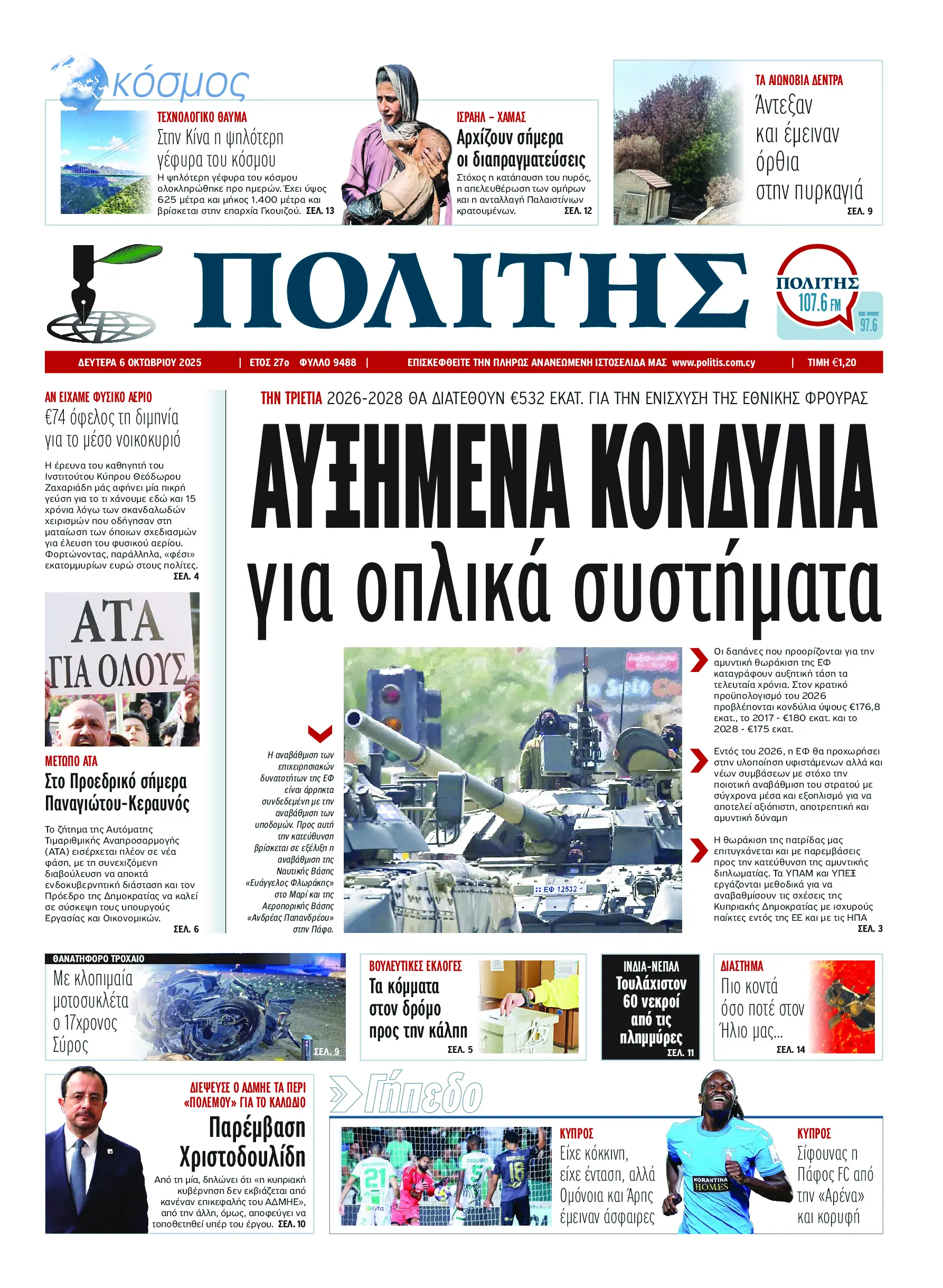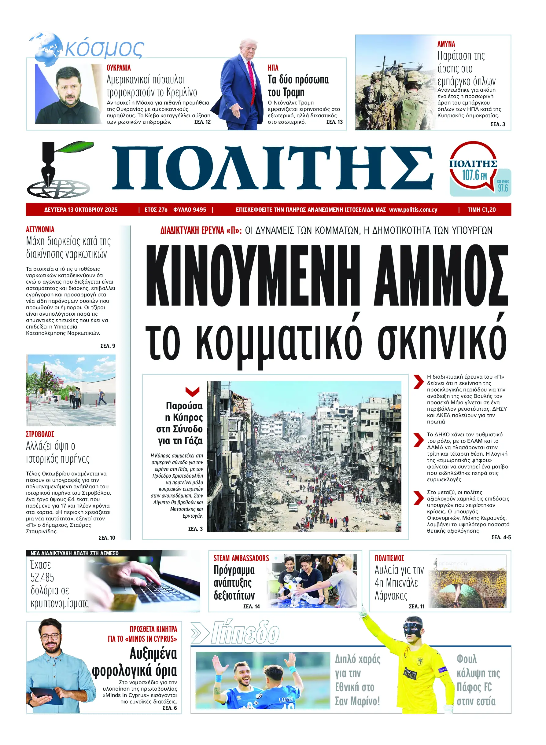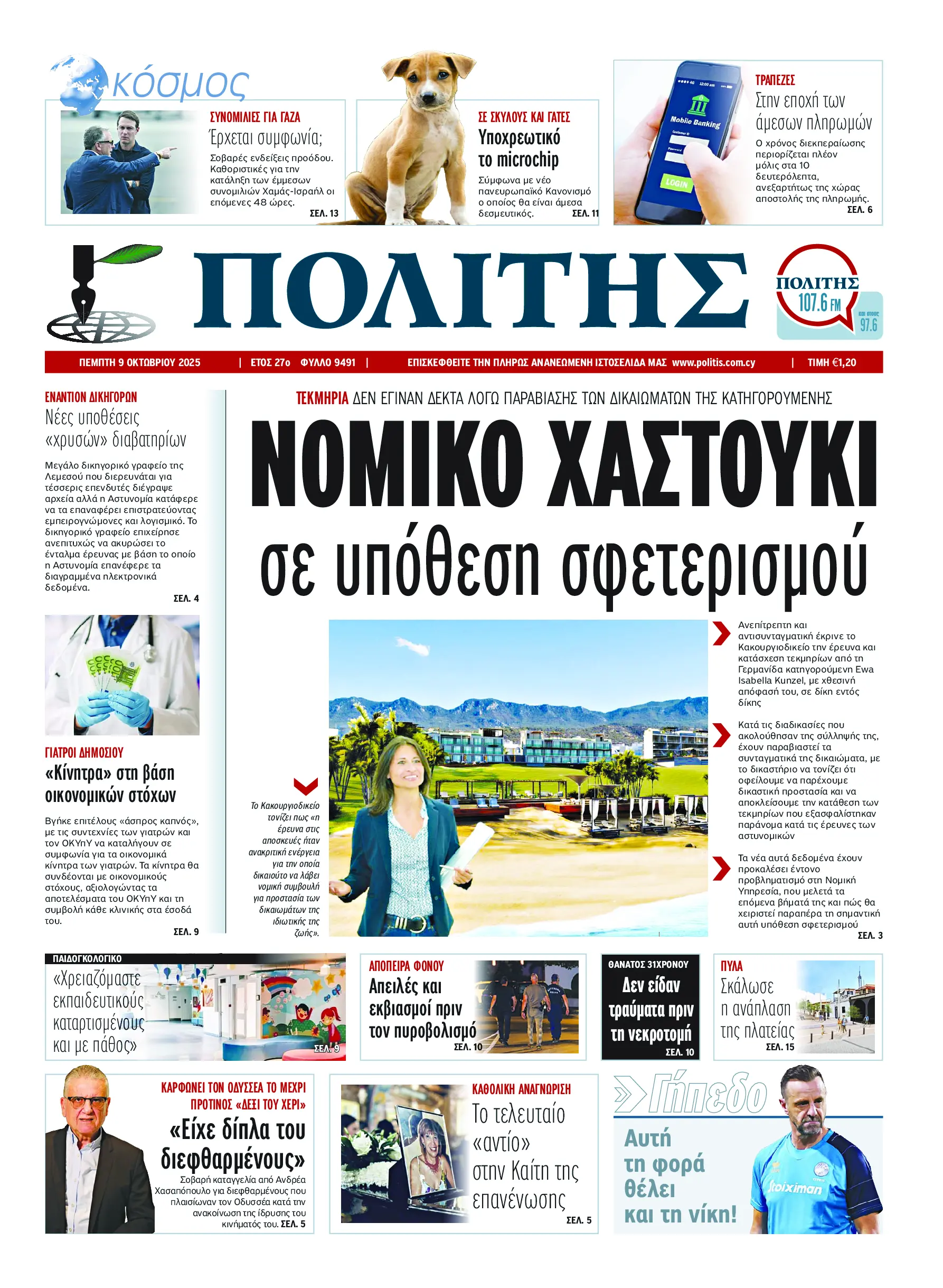 Σας καλωσορίζουμε στην Ψηφιακή Έκδοση της εφημερίδας «ΠΟΛΙΤΗΣ» σε ηλεκτρονική έκδοση στο διαδίκτυο. Η Ψηφιακή Έκδοση του «Π» διατηρεί τη μορφή και την αισθητική της εφημερίδας και είναι διαθέσιμη συνδρομητικά στην οθόνη σας, το κινητό και το tablet σας, από τις 05.00 το πρωί καθημερινά.