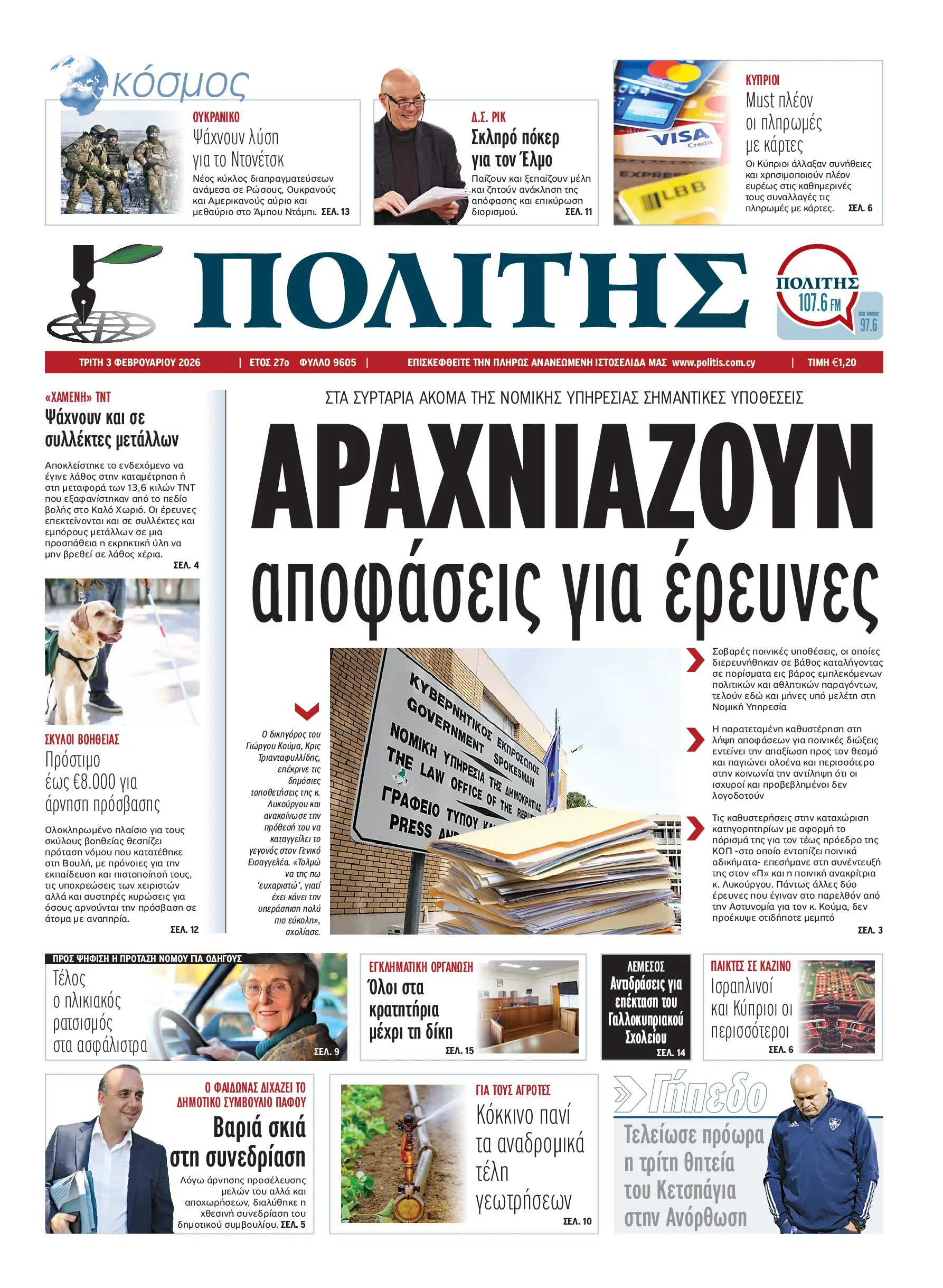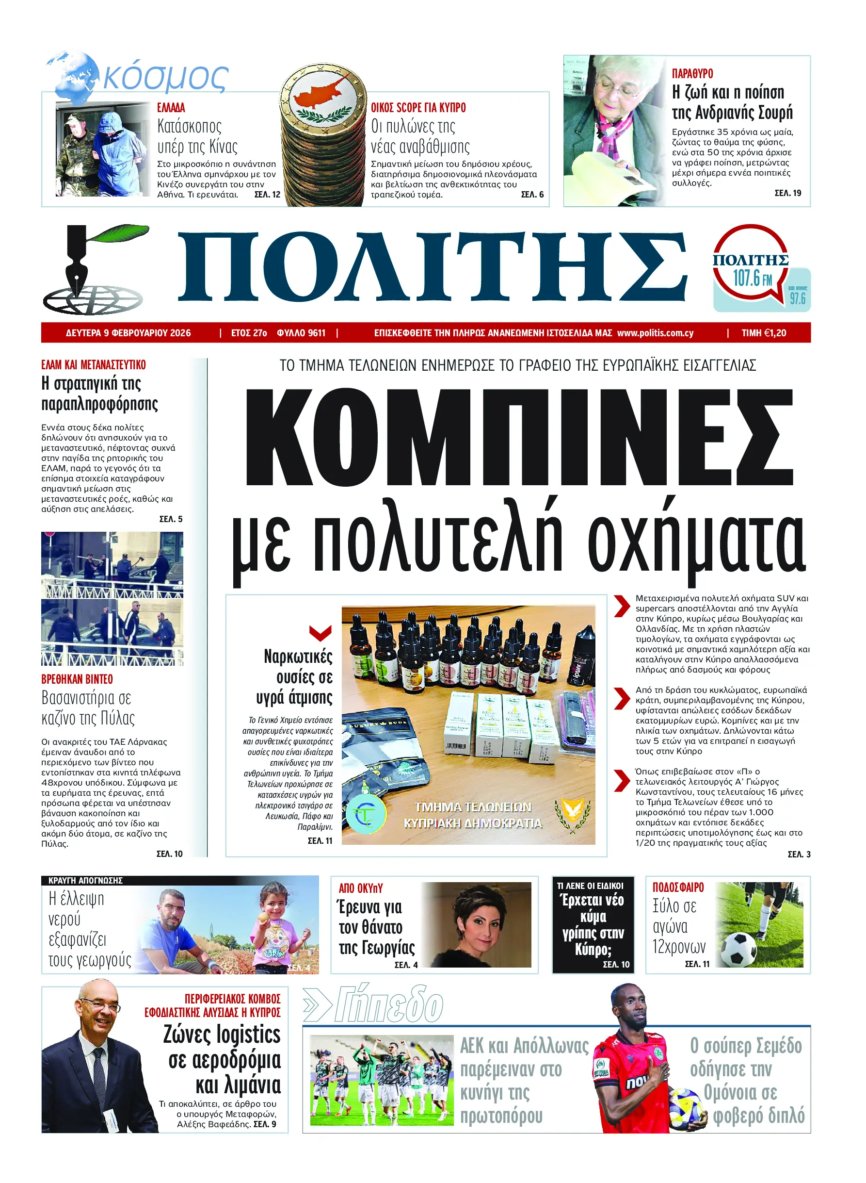 Σας καλωσορίζουμε στην Ψηφιακή Έκδοση της εφημερίδας «ΠΟΛΙΤΗΣ» σε ηλεκτρονική έκδοση στο διαδίκτυο. Η Ψηφιακή Έκδοση του «Π» διατηρεί τη μορφή και την αισθητική της εφημερίδας και είναι διαθέσιμη συνδρομητικά στην οθόνη σας, το κινητό και το tablet σας, από τις 05.00 το πρωί καθημερινά.