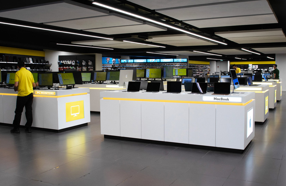 Στο κατάστημα παρουσιάζονται χιλιάδες προϊόντα τηλεπικοινωνίας, ήχου, τηλεοράσεις, ηλεκτρονικοί υπολογιστές, Gaming, προϊόντα ενέργειας, εποχιακά, αλλά και οικιακές συσκευές.