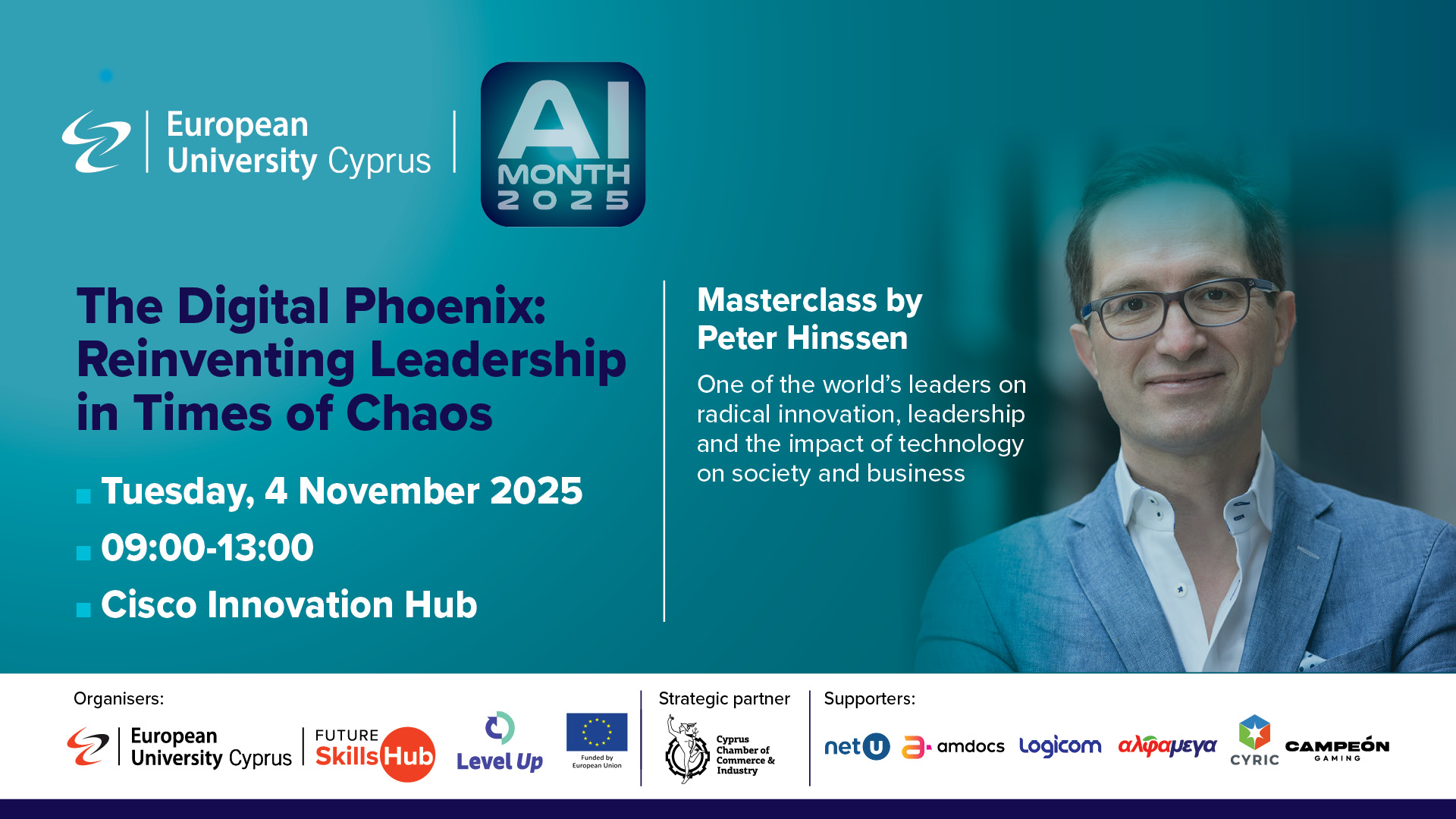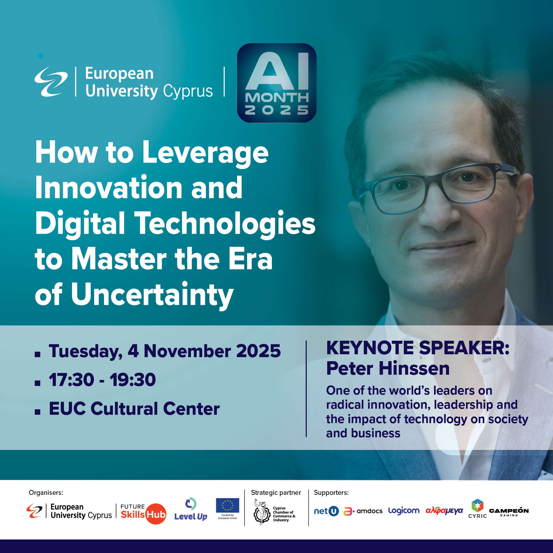 This exclusive event by European University Cyprus is a unique opportunity to meet and engage with Peter Hinssen, while networking with leading figures from Cyprus’s business and academic communities.