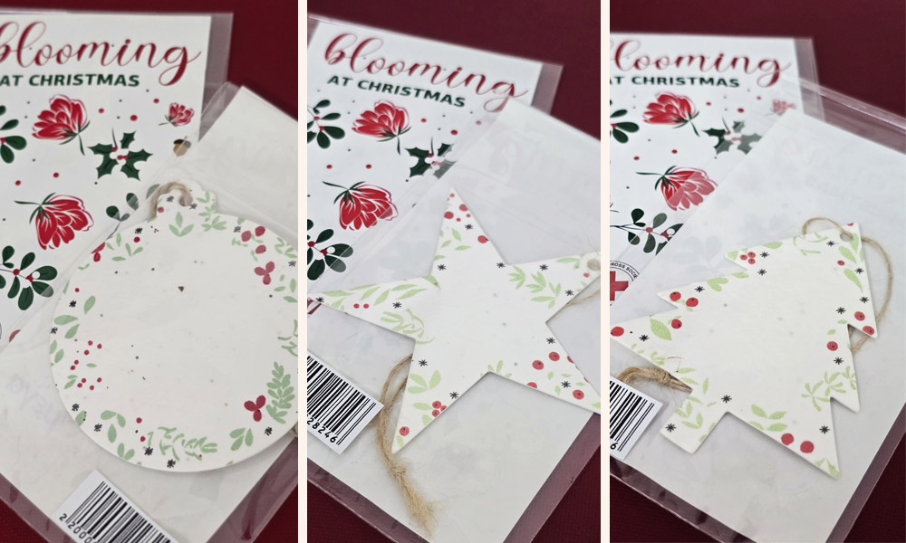 Στο πλαίσιο της εκστρατείας, διατίθενται τρία εναλλακτικά χριστουγεννιάτικα στολίδια, μπάλα, αστέρι και δέντρο, κατασκευασμένα από βιοδιασπώμενο χαρτί, ενσωματωμένα με σπόρους πετούνιας. Μετά το τέλος των γιορτών, τα στολίδια μπορούν να φυτευτούν, ανθίζοντας ως ένα ζωντανό σύμβολο ελπίδας και αναγέννησης.