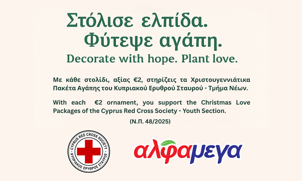 Οι υπεραγορές ΑΛΦΑΜΕΓΑ ενώνουν δυνάμεις με τον Κυπριακό Ερυθρό Σταυρό για ακόμη μια χρονιά, στηρίζοντας την ανανεωμένη χριστουγεννιάτικη εκστρατεία αγάπης του Τμήματος Νέων, με τίτλο «Blooming at Christmas» και μήνυμα «Στόλισε ελπίδα. Φύτεψε αγάπη». Πρόκειται για μια πρωτοβουλία που συνδυάζει τη χαρά των γιορτών με την οικολογική συνείδηση και την κοινωνική προσφορά.