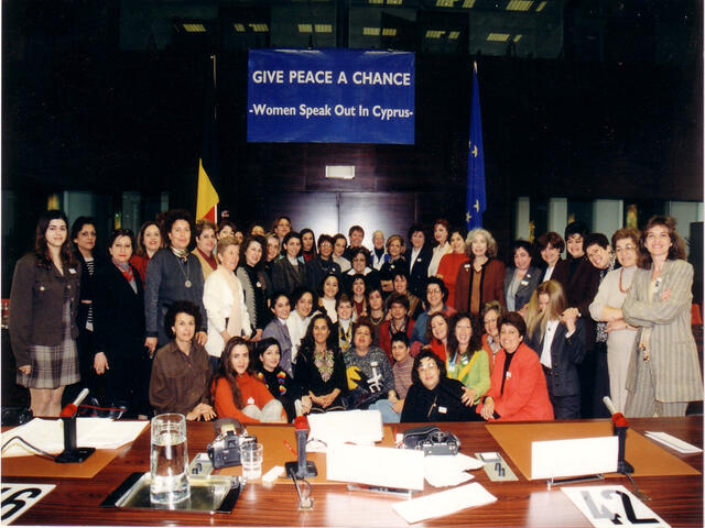 Με την Καίτη Κληρίδη, πήγαμε στις Βρυξέλλες μετά από πρόσκληση της Simone Susskind, ιδρύτριας της οργάνωσης «Actions in the Mediterranean», για να συμμετάσχουμε σε εργαστήρια με τίτλο: «Give Peace a Chance: Women Speak Out in Cyprus» (Δώστε μια ευκαιρία στην ειρήνη: Οι γυναίκες μιλούν στην Κύπρο). Η Simone Susskind συνεργαζόταν ήδη με γυναίκες από το Ισραήλ και την Παλαιστίνη και είχε προσκαλέσει γυναίκες από διαφορετικά πολιτικά κόμματα, ΜΚΟ, ακτιβίστριες και ακαδημαϊκούς να συναντηθούν, ώστε να συζητήσουν τι χρειαζόταν στην Κύπρο για να ακουστούν οι φωνές των γυναικών για την ειρήνη.