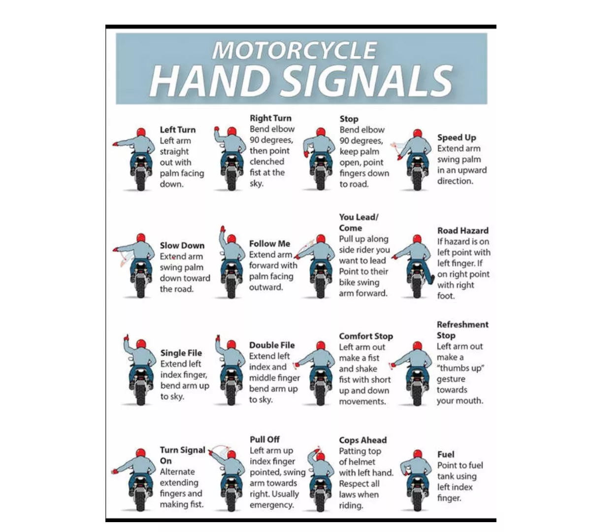 Υπάρχουν 16 γνωστές χειρονομίες που χρησιμοποιούν οι μοτοσικλετιστές σε όλο τον κόσμο. Πάμε να δούμε επιγραμματικά τι σημαίνει ο καθένας.
