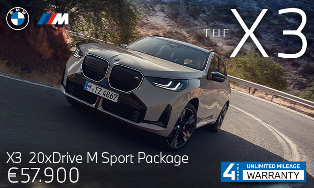 Ο Όμιλος Πηλακούτα προσφέρει όλα τα πιο πάνω για όσους αναζητούν ένα premium SUV που συνδυάζει δυναμισμό, πολυτέλεια και κορυφαία τεχνολογία. Η BMW X3 xDrive20i με το M Sport Package προσφέρεται σε ειδική τιμή €57.900, καθιστώντας την μία από τις πιο ανταγωνιστικές επιλογές στην κατηγορία των πολυτελών μεσαίων SUV. Μαζί και η τετραετής εργοστασιακή εγγύηση απεριόριστων χιλιομέτρων.