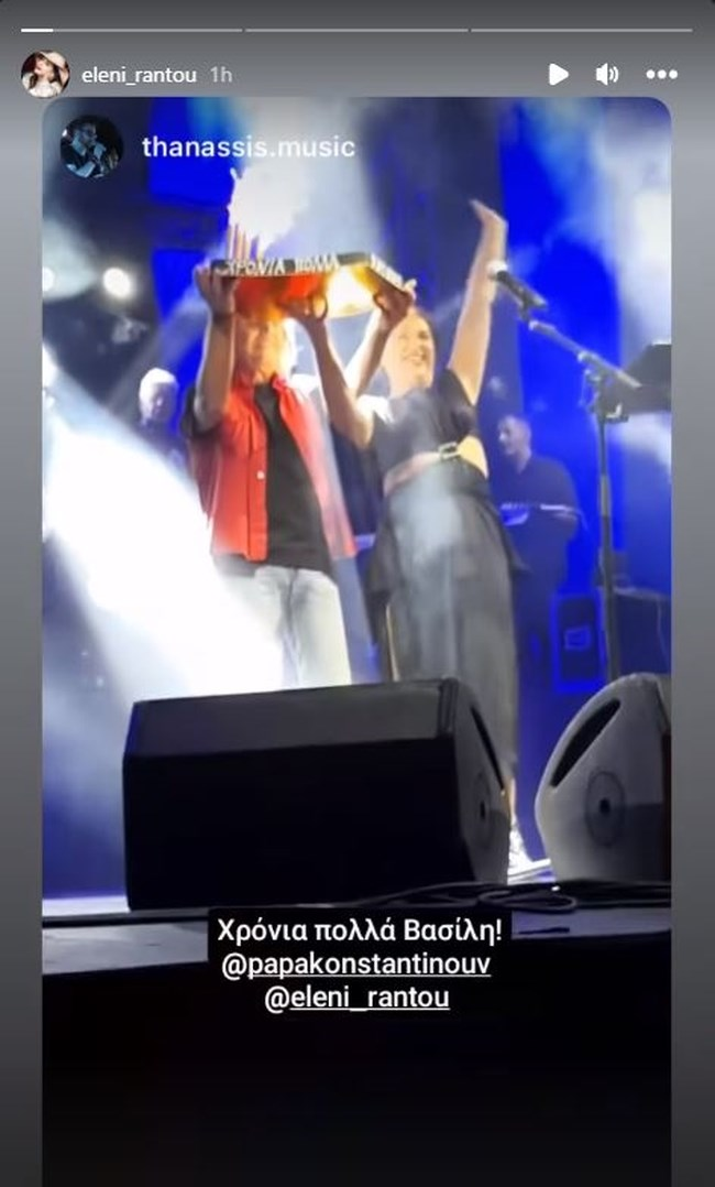 Μάλιστα, η Ελένη Ράντου δεν έμεινε εκεί, αφού έκανε έκπληξη στον Βασίλη Παπακωνσταντίνου, φέρνοντάς του τούρτα με κεράκια πάνω στη σκηνή!