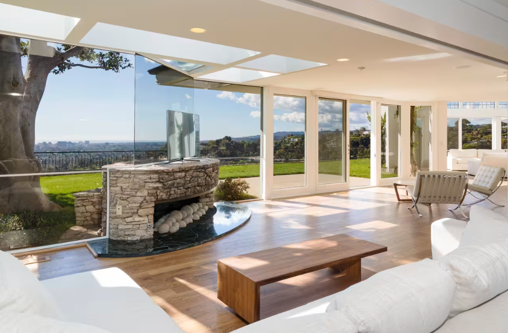 Το σπίτι των 5.300 τετραγωνικών μέτρων σπίτι βρίσκεται σε ένα οικόπεδο 1,1 στρεμμάτων και προσφέρει απεριόριστη θέα της πόλης του Λος Άντζελες και του Ειρηνικού ωκεανού. Έχει τέσσερα υπνοδωμάτια και πέντε μπάνια, ενώ αρκετά από τα υπνοδωμάτια έχουν συρόμενες γυάλινες πόρτες που οδηγούν στην πίσω αυλή.