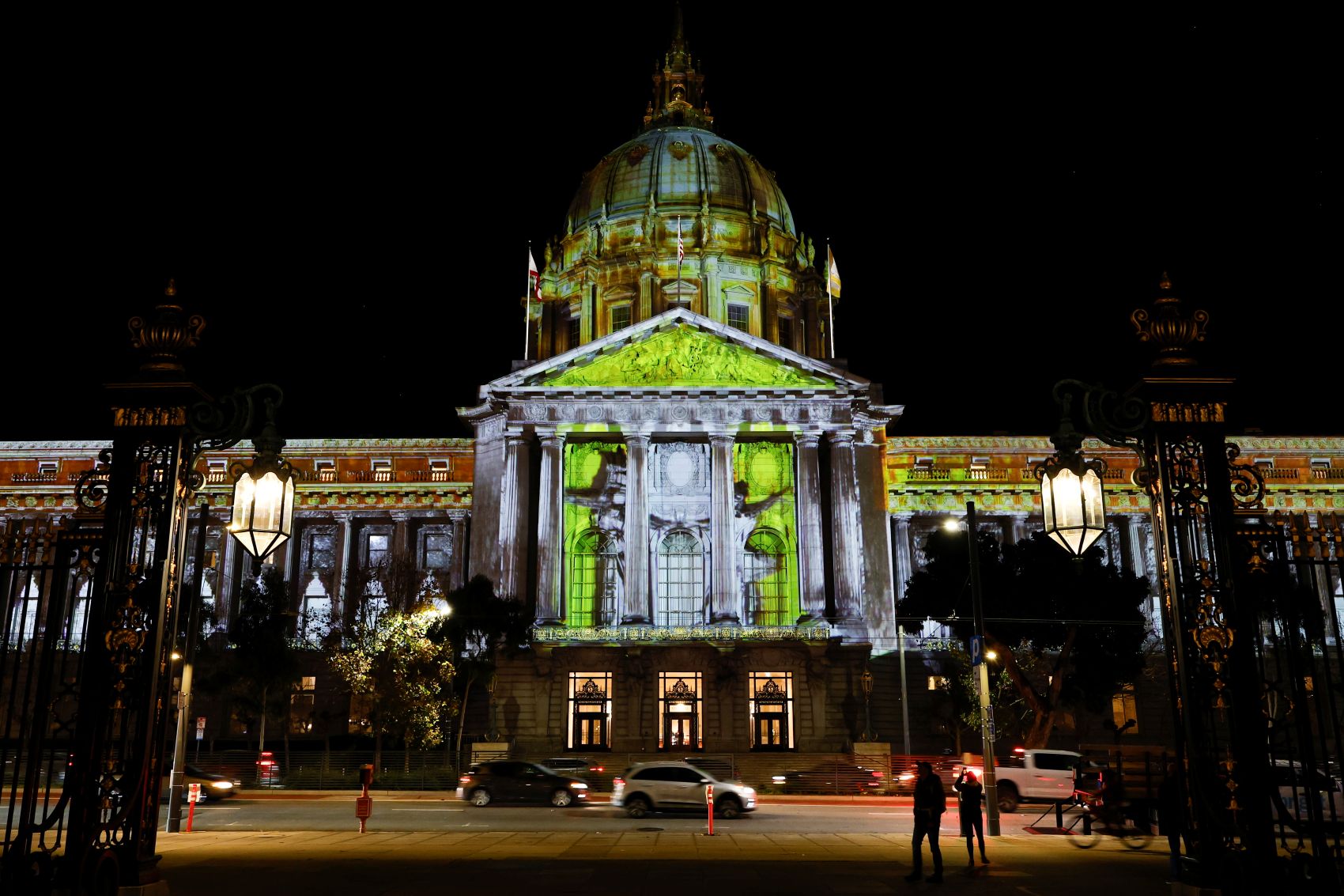 Περισσότερα από 220 υπερσύγχρονα φωτιστικά LED φωτίζουν το εξωτερικό του δημαρχείου τις ημέρες των Χριστουγέννων και οι προβολές εικόνων συνοδεύονται από μουσική.