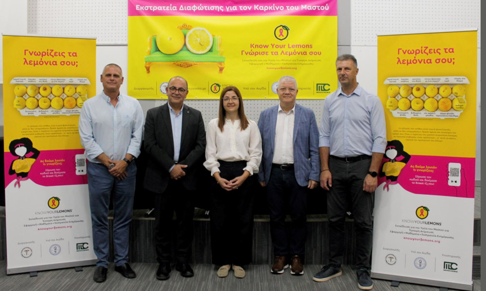 Αυτή η εικόνα έφτασε σήμερα και στην Κύπρο, μέσα από την εκστρατεία «Know Your Lemons – Γνώρισε τα Λεμόνια σου», η οποία παρουσιάστηκε σε συνέντευξη Τύπου που διοργάνωσε η Ογκολογική Εταιρεία Κύπρου (ΟΕΚ) στη Δημοσιογραφική Εστία, στο πλαίσιο του Διεθνούς Μήνα Ενημέρωσης και Ευαισθητοποίησης για τον Καρκίνο του Μαστού.