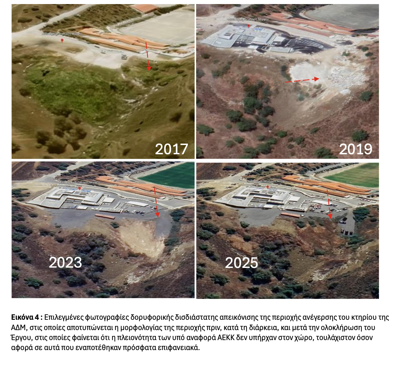 Η Ελεγκτική Υπηρεσία, όπως αναφέρεται στην έκθεση, δέχθηκε καταγγελία για τη διαχείριση των αποβλήτων από την κατασκευή του έργου τον Ιανουάριο του 2023 και τον Μάιο του ίδιου έτους πραγματοποίησε τον πρώτο έλεγχο. Στις 16 Δεκεμβρίου 2025, δύο χρόνια μετά, ολοκληρώθηκε ο έλεγχος και ανακοινώθηκε το πόρισμα.