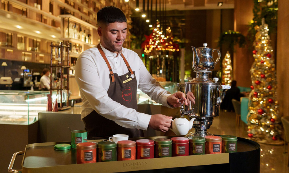 Σε αυτό το Χριστουγεννιάτικο σκηνικό επιστρέφει και το Festive Afternoon Tea, προσκαλώντας μας να εξερευνήσουμε τον κόσμο του εκλεκτού τσαγιού. Τα blends του γαλλικού οίκου Dammann Frères αποκαλύπτουν στο κάθε φλιτζάνι αρώματα που θυμίζουν τη γιορτινή περίοδο… πορτοκάλι, καραμέλα, μαρασκίνο, βανίλια, gingerbread, κακάο και μπαχαρικά. Γεύσεις που ξεδιπλώνονται αργά, σαν μια μικρή τελετουργία. Την εμπειρία ολοκληρώνει ο εντυπωσιακός Tea Tower με αλμυρές και γλυκές δημιουργίες που φέρουν την υπογραφή των Pastry Chefs του Four Seasons.