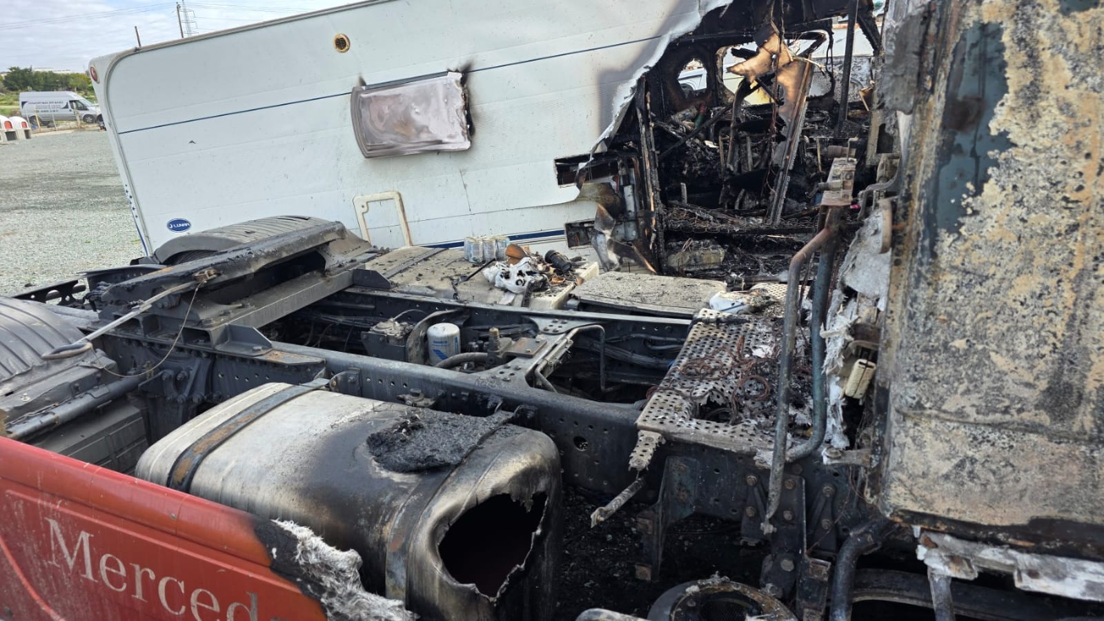 Από τις πρώτες εξετάσεις που διενεργήθηκαν στη σκηνή, διαπιστώθηκε ότι καταστράφηκαν ολοσχερώς, ένα αρθρωτό φορτηγό όχημα, ένα ρυμουλκούμενο τροχόσπιτο ενώ προκλήθηκαν εκτεταμένες ζημιές και σε αυτοκίνητο, όλα ιδιοκτησίας 62χρονου.