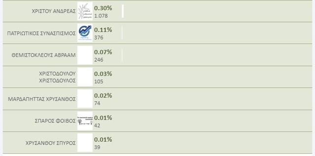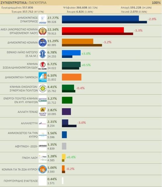 Λίγο πριν από τις 23:00 το βράδυ της Κυριακής, η Υπηρεσία Εκλογών ανήρτησε τα τελικά αποτελέσματα της καταμέτρησης των ψήφων, παγκύπρια.