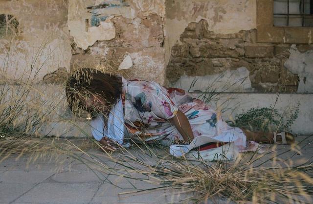 Πίσω από την πλαστική καρέκλα στην οποία κάθεται ο αστυνομικός ξεκινά ένας δρόμος ο οποίος έχει χορταριάσει αλλά περπατιέται. «Σε ποιο ύψος βρισκόμαστε;» ρωτά τον αστυνομικό. «Το σπίτι μου βρίσκεται στον οδό Εσπερίδων.»
