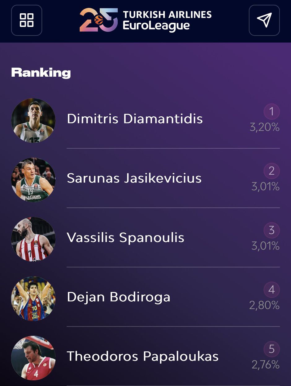 Στο πλαίσιο του εορτασμού των 25 χρόνων της, η διοργανώτρια είχε λανσάρει ψηφοφορία για την ανάδειξη της All-25 Euroleague Team.