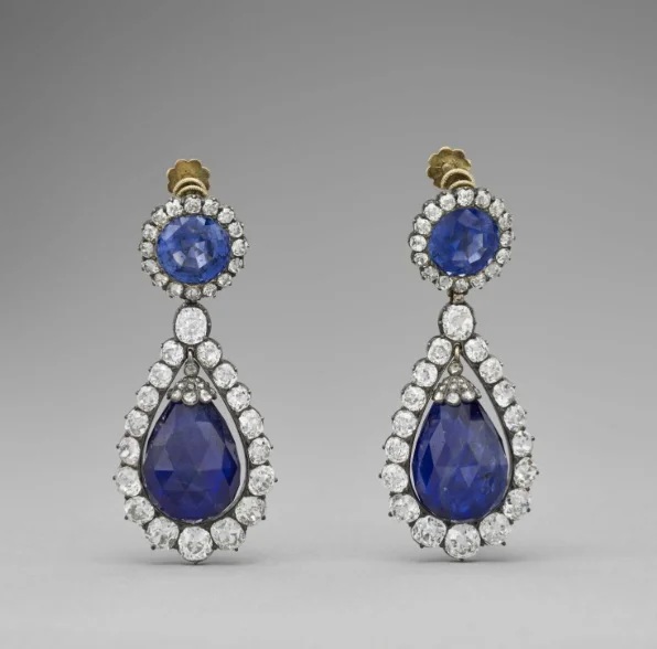 -Σκουλαρίκια, από το σετ ζαφειριών της βασίλισσας Μαρί-Αμαλίας και της βασίλισσας Ορτάνς.