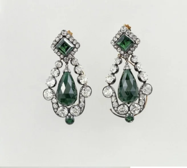 -Σμαραγδένια σκουλαρίκια από το σετ της Μαρί-Λουίζ.