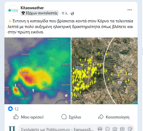 Η καταιγίδα επηρέασε κυρίως το τμήμα του αυτοκινητόδρομου Λευκωσίας – Λεμεσού στο ύψος του Κόρνου, όπου η βροχή ήταν ιδιαίτερα έντονη, με τους οδηγούς να αναγκάζονται να μειώσουν ταχύτητα.