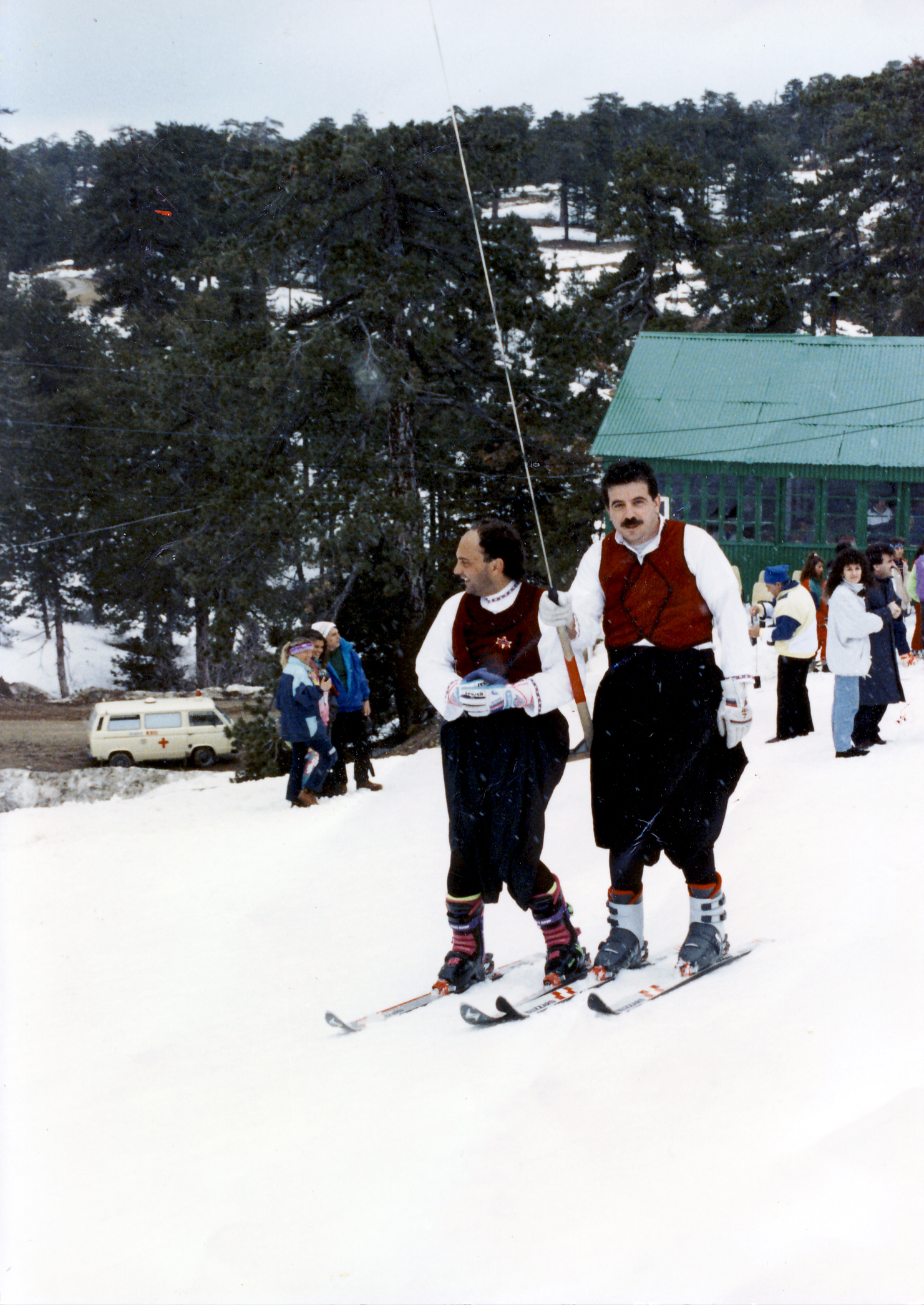 Οι πρώτοι αγώνες του κυπέλλου των χωρών SES έγιναν στο Τρόοδος το 1990. Η εναρκτήρια τελετή έγινε με Κύπριους βρακάδες, μεταξύ των οποίων και ο ίδιος (αριστερά), να κάνουν καταβάσεις από την κορυφή του Ολύμπου.