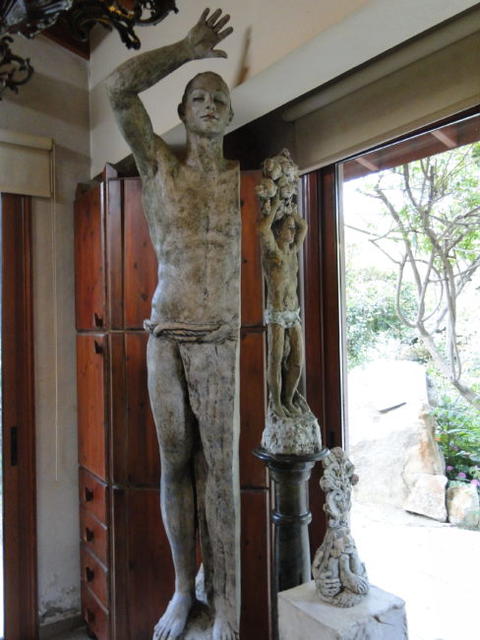 Να έχει ψωμί. Να τρώμε. Το πρώτο πράγμα αυτό. Επίσης χωρίς τέχνη δεν θα υπάρχει άνθρωπος. Και άνθρωπος σημαίνει ανορθώνομαι από τα τέσσερα πόδια και στέκω, και κοιτάζω το θείο, το πνεύμα. Και αυτό μπορείς να το δεις στη δουλειά μου. Παρατήρησε εκείνο το γλυπτό με τον νεαρό. Μπορεί να είναι μισός, γιατί είμαστε μισοί, δεν είμαστε σωστοί, αλλά σου λέει «σταμάτα, και είμαι εδώ, είμαι εγώ, και έχω τον δικό μου νόμο, και ο δικός μου νόμος είναι να είσαι ανορθωμένος!».