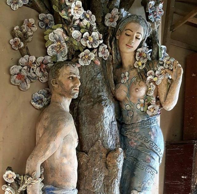 Για εκείνες τις πέντε εκθέσεις έκανα άγρια, δραματικά έργα, τα οποία στο τέλος με έκαναν γνωστό. Ήταν έργα που πήγαζαν από τα συναισθήματά μου, που τα ανασκάλεψα στην ψυχανάλυση, ώστε να βγουν προς τα έξω τα δράματα που έζησα μωρό. Όμως σε κάποια στιγμή, πάλι χάρη στην ψυχανάλυση, αντιλήφθηκα ότι εάν συνέχιζα με εκείνα τα έργα θα όδευα προς τον θάνατο. Βρέθηκα τότε σε ένα σημείο που μου είπαν «ποιο είναι το πιο σημαντικό πράγμα στον κόσμο;» και είπα «είναι ο Αδάμ και η Εύα, σαν έννοια». Ο Αδάμ είναι η αντρική μας πλευρά και η Εύα η γυναικεία μας. Στην ιδανική τους κατάσταση. Από τότε δεν φεύγω ποτέ από το θέμα μου, για χρόνια το επεξεργάζομαι με όλους τους τρόπους, είτε εμπνέομαι από αρχαία ελληνική κεραμική είτε από αφρικανική - ασιατική τέχνη.