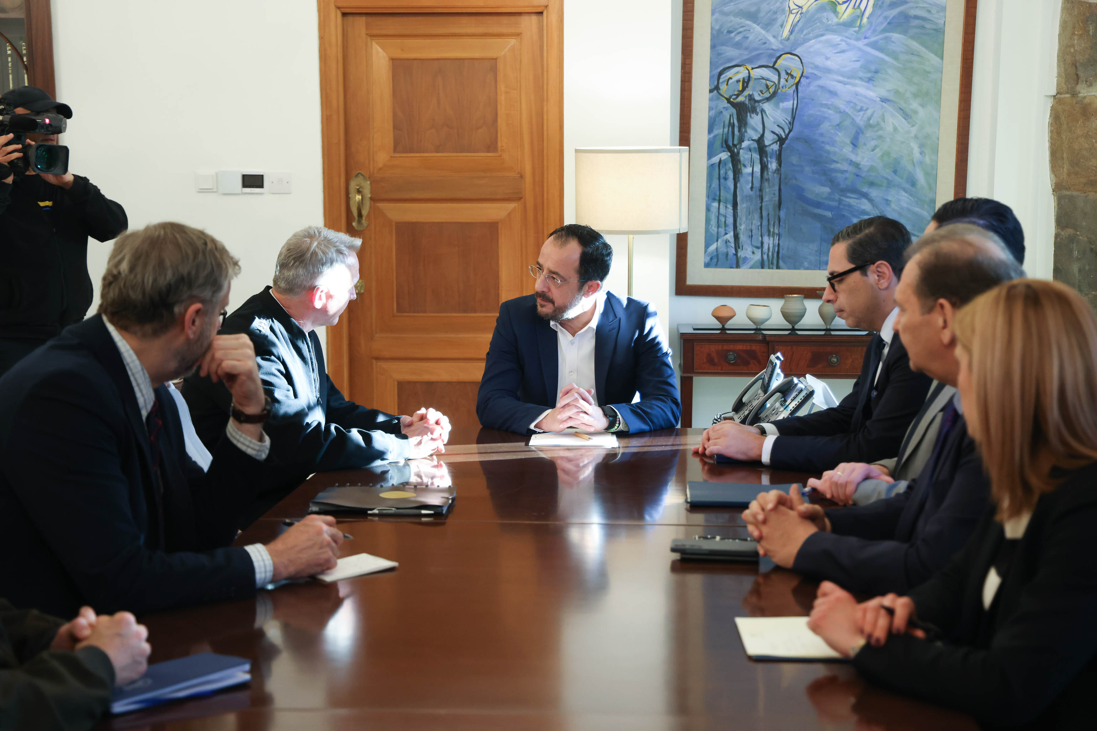 Η συνεργασία Κυπριακής Δημοκρατίας-ΗΠΑ στέλνει ένα ισχυρό μήνυμα σε όλες τις χώρες της περιοχής, αλλά και σε χώρες που δεν είναι στην περιοχή αλλά ενδιαφέρονται για την περιοχή μας, δήλωσε ο Πρόεδρος της Δημοκρατίας, Νίκος Χριστοδουλίδης, κατά τη συνάντησή του σήμερα το απόγευμα, στο Προεδρικό Μέγαρο, με τον Διοικητή του 6ου Στόλου του Πολεμικού Ναυτικού των Ηνωμένων Πολιτειών Αμερικής, Αντιναύαρχο Τζέφρι Άντερσον, τον οποίον συνόδευε η Πρέσβης των ΗΠΑ στην Κύπρο Τζούλι Φίσερ.