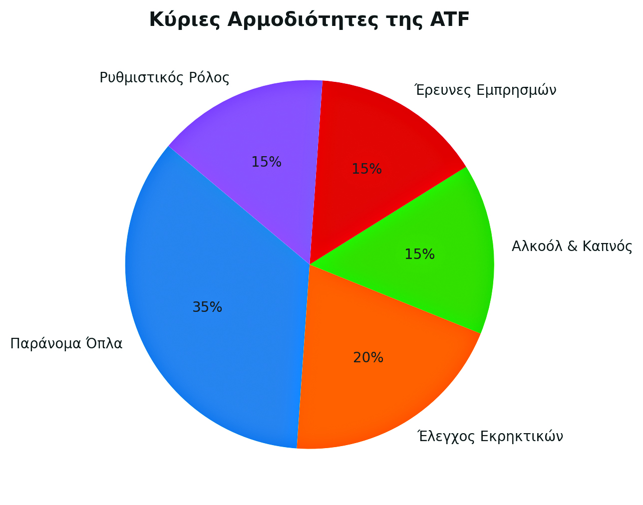 Με λίγα λόγια, η ATF είναι η «ειδική αστυνομία» των ΗΠΑ για τα όπλα, τα εκρηκτικά, τους εμπρησμούς και το λαθρεμπόριο αλκοόλ και καπνού, με έμφαση σε οργανωμένο έγκλημα και δημόσια ασφάλεια.
