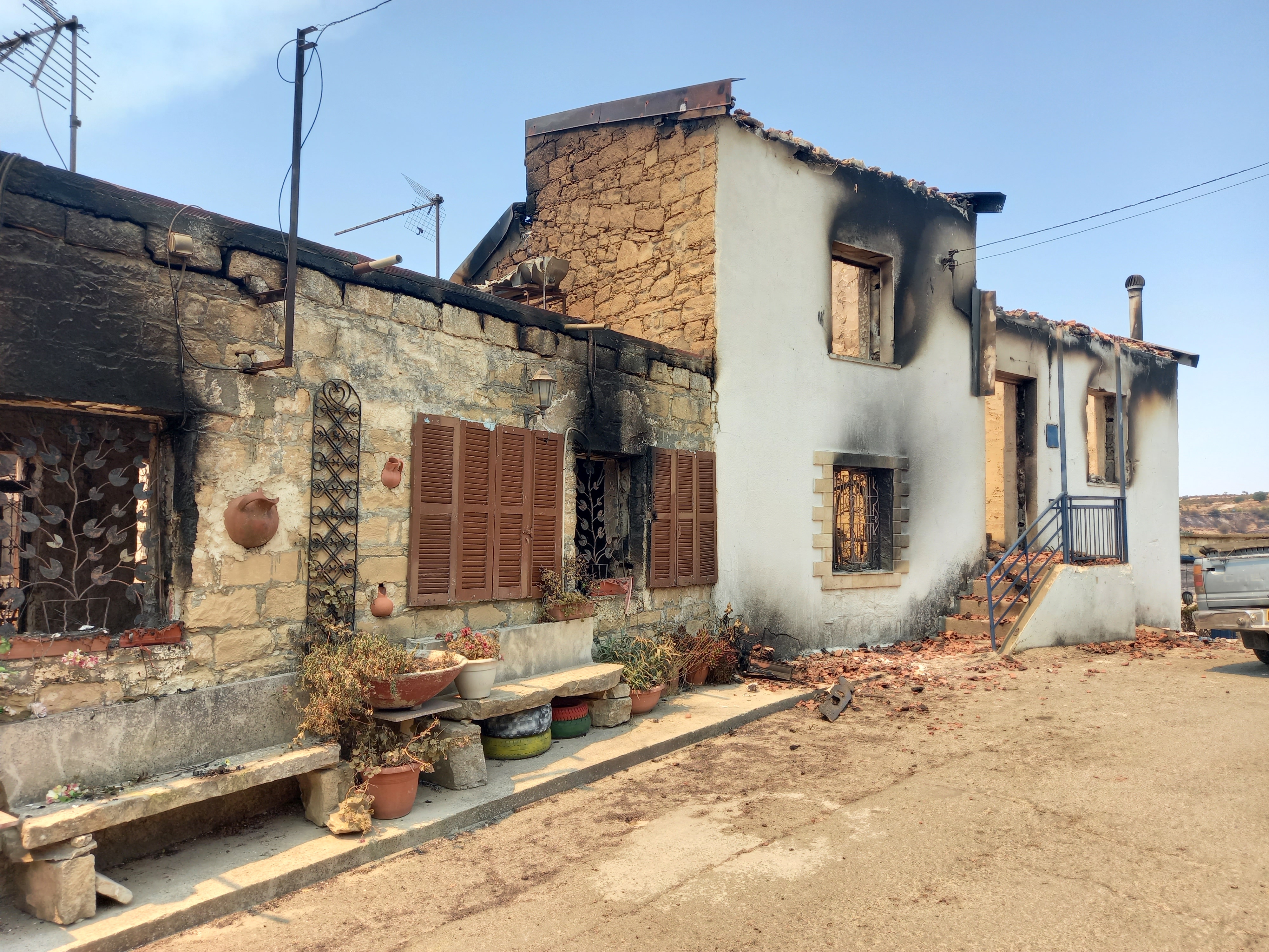 Οικίες στη Μαλιά μετά την πυρκαγιά. Η κοινότητα την Τετάρτη 23 Ιουλίου γύρω στις 14:10 ζήτησε βοήθεια για εκκένωσή της, σύμφωνα με το Υπουργείο Εσωτερικών.