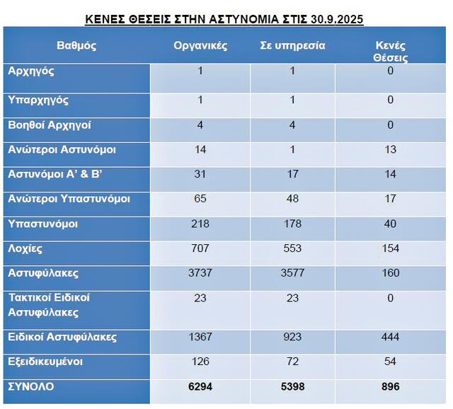 *Αύξηση των οργανικών θέσεων: Η Αστυνομία δεν διαθέτει σήμερα πολιτικό προσωπικό, με αποτέλεσμα σημαντικός αριθμός αστυνομικών να απασχολείται σε γραφειακά καθήκοντα αντί σε αμιγώς αστυνομικά. Το Αρχηγείο Αστυνομίας ολοκλήρωσε στα τέλη του 2023 μελέτη για την πρόσληψη σχεδόν 400 πολιτών που θα στελεχώσουν διοικητικές θέσεις, ωστόσο μέχρι σήμερα δεν έχουν προκηρυχθεί.