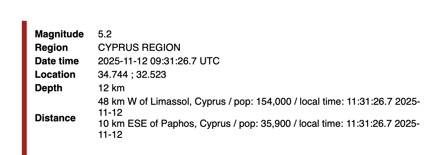 #Earthquake (#σεισμός) confirmed by seismic data.⚠Preliminary info: M5.4 || 14 km E of #Paphos (#Cyprus) || 6 min ago (local time 11:31:27). Follow the thread for the updates👇 pic.twitter.com/aHhPCU7PFk