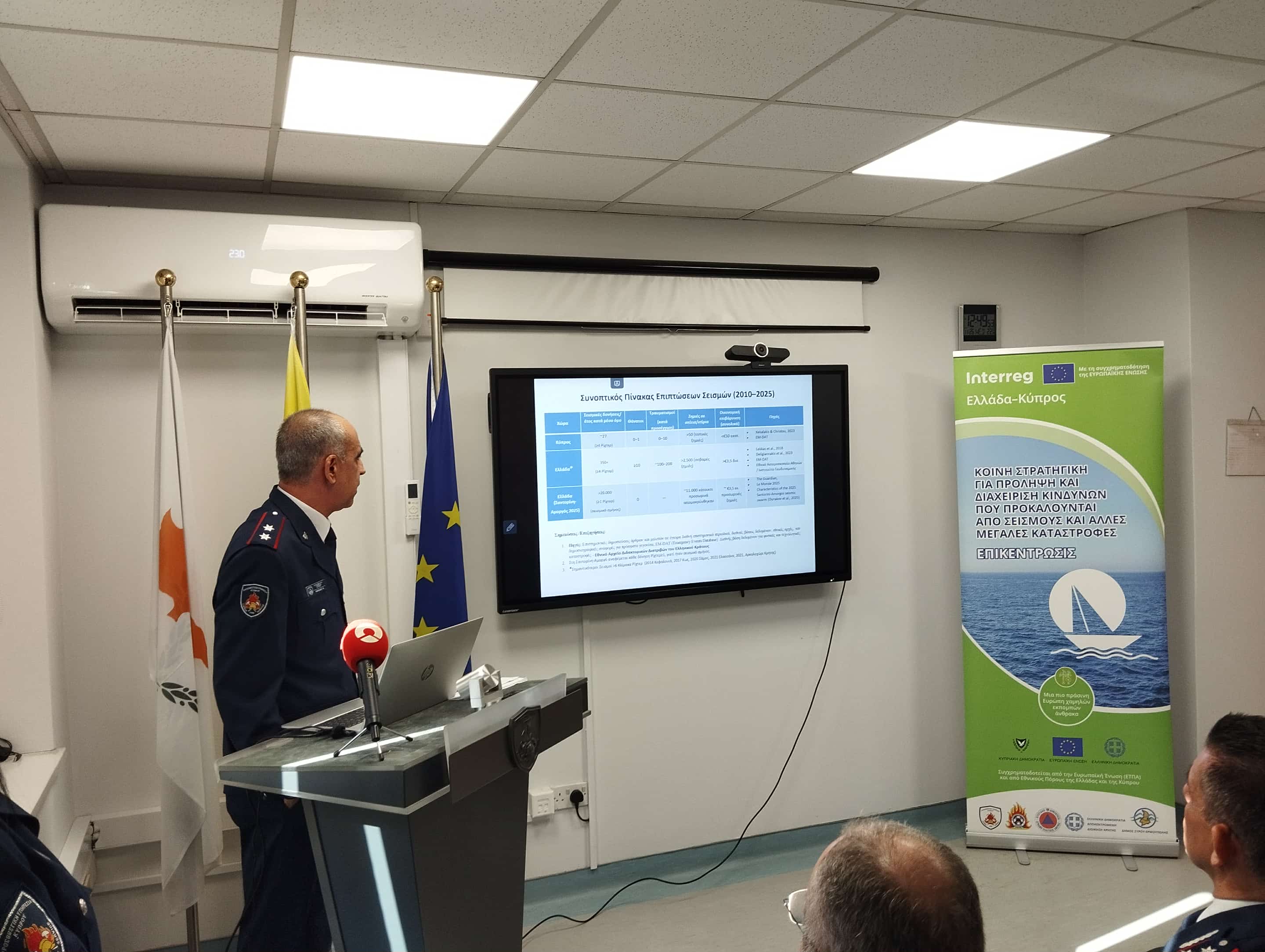 «Με αυτό το έργο, ενισχύεται τόσο η τοπική επιχειρησιακή ικανότητα όσο και η κοινή διασυνοριακή μας ετοιμότητα. Η Ελλάδα και, ακόμη περισσότερο, η Κύπρος βρίσκονται σε σεισμογενές περιβάλλον λόγω της γεωλογικής τους θέσης, επιβεβαιώνοντας την κρισιμότητα του έργου. Η Κύπρος, καθώς βρίσκεται στο λεγόμενο 'Κύπριο τόξο', στην περιοχή σύγκλισης της Αφρικανικής και της Ευρασιατικής πλάκας όπου παρατηρείται υψηλή σεισμική δραστηριότητα, καθίσταται ιδιαίτερα ευάλωτη σε σεισμικά φαινόμενα. Οι συνθήκες αυτές επιβεβαιώνουν ότι πρέπει να αντιμετωπίζουμε τους σεισμούς όχι ως πιθανότητα, αλλά ως ρεαλιστικό και διαρκή κίνδυνο», ανέφερε.