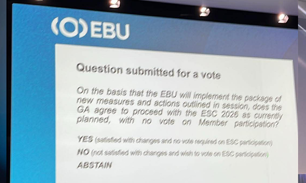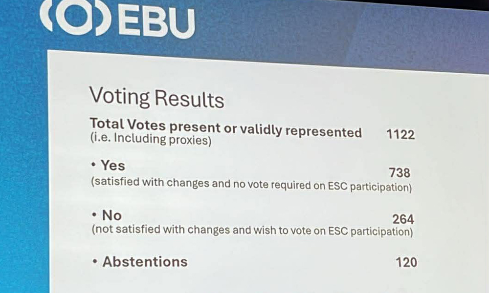 Με 738 ψήφους υπέρ και 268 κατά, τα μέλη της EBU αποφάσισαν υπέρ της παραμονής του ραδιοτηλεοπτικού σταθμού Kan στη Eurovision και κατ' επέκταση της συμμετοχής του Ισραήλ. Το θέμα τέθηκε σε ψηφοφορία πριν από λίγο κατά τη διάρκεια γενικής συνέλευσης της EBU που διεξάγεται στη Γενεύη. Στην ουσία τα μέλη της EBU ψήφισαν... έμμεσα την παραμονή του Ισραήλ, αφού το ερώτημα ήταν κατά πόσον ήταν ικανοποιημένα με τις αλλαγές που έγιναν σε σχέση με την ψηφοφορία.