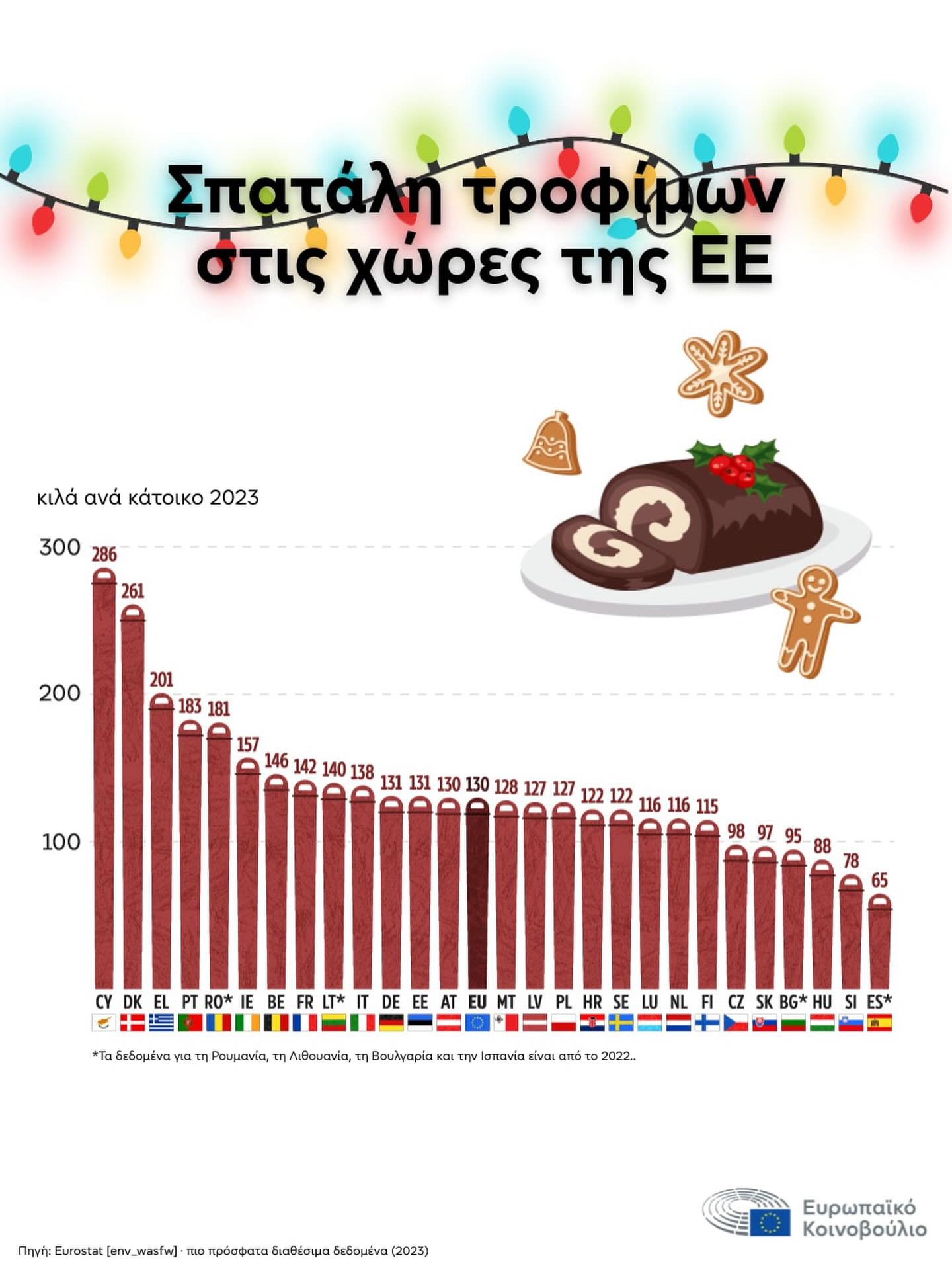 Και αυτό, όσο αθώο κι αν φαίνεται, αφήνει πίσω του ένα αποτύπωμα που δεν είναι καθόλου μικρό. Σύμφωνα με στοιχεία της Ευρωπαϊκής Ένωσης, το 2023 η χώρα με τη μεγαλύτερη ποσότητα σπατάλης τροφίμων ανά κάτοικο ήταν η Κύπρος. Συγκεκριμένα, κατά μέσο όρο, στην Κύπρο κάθε πολίτης σπαταλά περίπου 286 κιλά τροφίμων τον χρόνο, την ώρα που ο ευρωπαϊκός μέσος όρος είναι γύρω στα 130 κιλά.