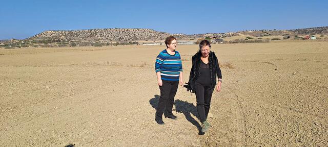 Μας δείχνει πού είχε σκάψει προηγουμένως η ΔΕΑ και πού πιστεύει ότι πρέπει να γίνουν εκσκαφές για να βρεθεί το πηγάδι. «Ήταν ένα πολύ βαθύ πηγάδι, όπως το θυμούμαι από την παιδική μου ηλικία», λέει, «και δεν είχε μέσα νερό».