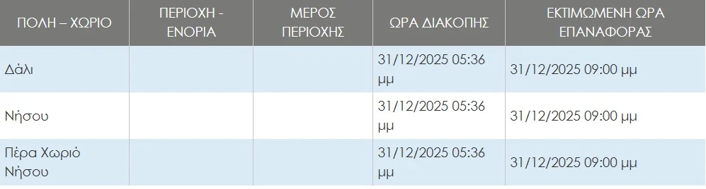 Οι περιοχές που επηρεάζονται είναι το Δάλι, η Νήσου και το Πέρα Χωρίου Νήσου.