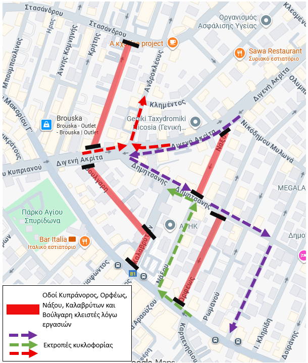 Λόγω των εργασιών, η οδός Κυπράνορος θα παραμείνει κλειστή για την τροχαία κίνηση από τις 21 Ιανουαρίου 2026 και για χρονικό διάστημα περίπου τεσσάρων (4) μηνών. Οι οδηγοί καλούνται να επιδεικνύουν ιδιαίτερη προσοχή και να συμμορφώνονται με τη σχετική τροχαία σήμανση και τις εκτροπές κυκλοφορίας, όπως υποδεικνύονται στον συνημμένο χάρτη.