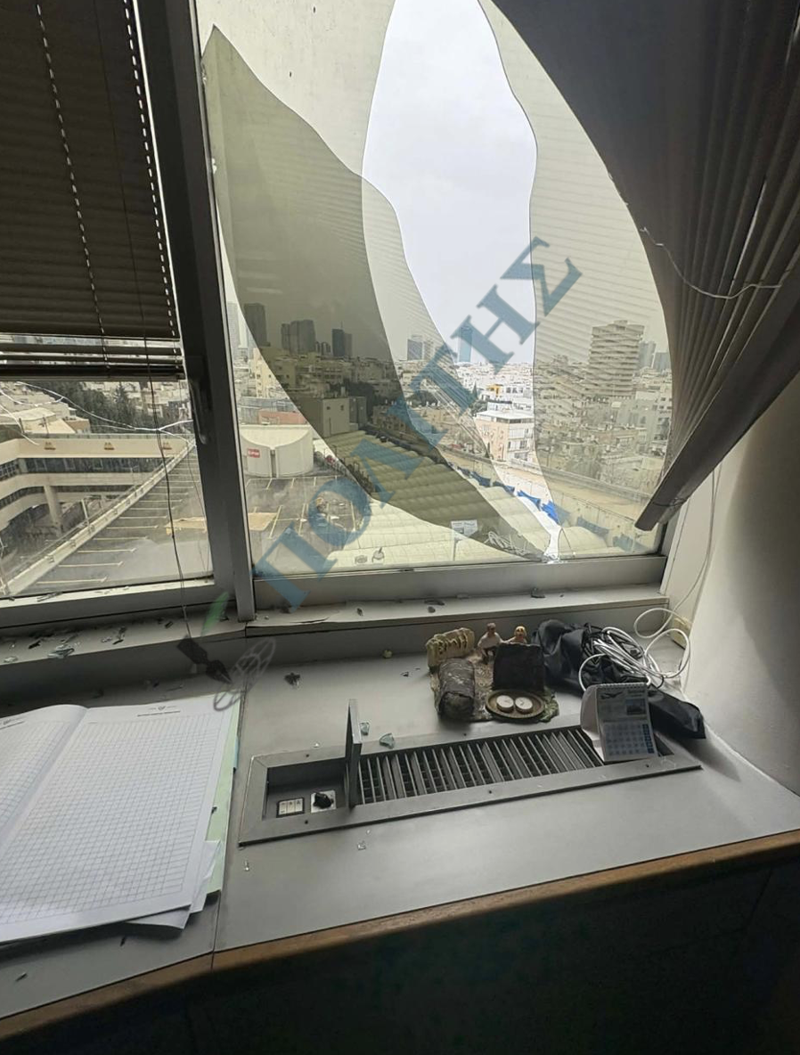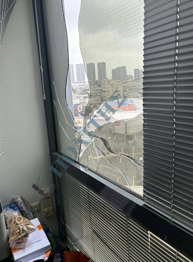 Θραύσματα χτύπησαν και προκάλεσαν υλικές ζημιές στην πολυκατοικία που στεγάζει την Πρεσβεία της Κύπρου στο Τελ Αβίβ τα ξημερώματα της Πέμπτης 2 Απριλίου.