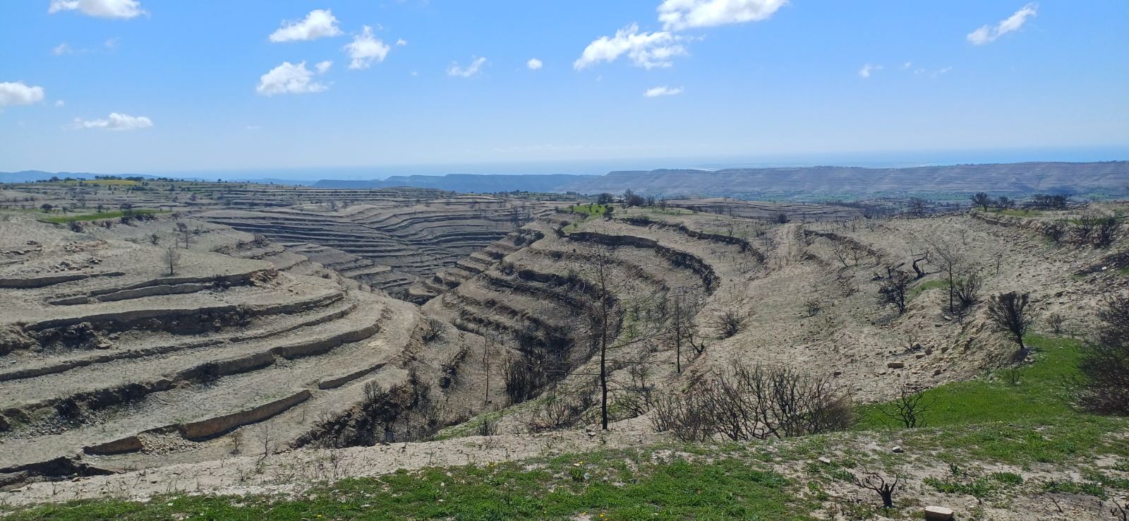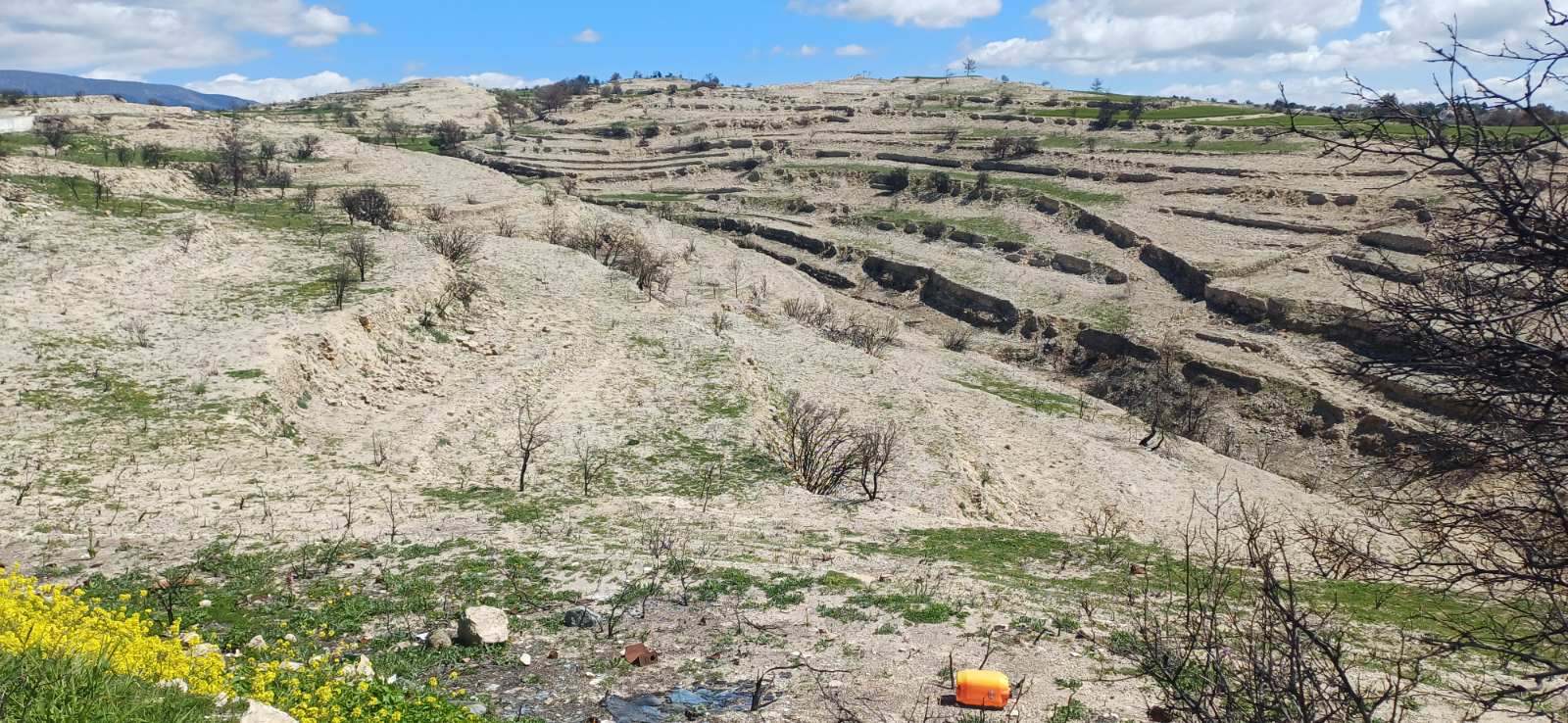 Διανύουμε μία περίοδο έντονης ανάπτυξης για τη βλάστηση, ώστε στην κυπριακή γη να κυριαρχεί το πράσινο. Σε αυτό συνέβαλαν σημαντικά οι θετικές βροχοπτώσεις. Μπορεί τέτοιες εικόνες, να τις συναντά κανείς σήμερα και σε ορισμένα σημεία στις καμένες περιοχές, δημιουργώντας αισιοδοξία, όπως και η είδηση από την Υπηρεσία Θήρας και Πανίδας στις αρχές του μήνα για ένα ζεύγος Σπιζαετών (Aquila fasciata), το οποίο αρνήθηκε να εγκαταλείψει την περιοχή του και επέλεξε να φωλιάσει πάνω σε έναν καμένο πεύκο, ώστε να εκκολαφθούν με επιτυχία δύο νεοσσοί, ωστόσο την ίδια ώρα παραμένουν περιοχές, οι οποίες έχουν καταστραφεί σε τόσο μεγάλο βαθμό από την πυρκαγιά, ώστε να μη βλαστήσει «ούτε ένα χόρτο». Αυτό επιβεβαίωσε μιλώντας στον «Π» ο ανώτερος λειτουργός της Υπηρεσίας Θήρας και Πανίδας, Νίκος Κασίνης, παραχωρώντας και σχετικό φωτογραφικό υλικό, όπως από καμένες περιοχές κοντά στα χωριά Άγιος Θεράπων και Λόφου.