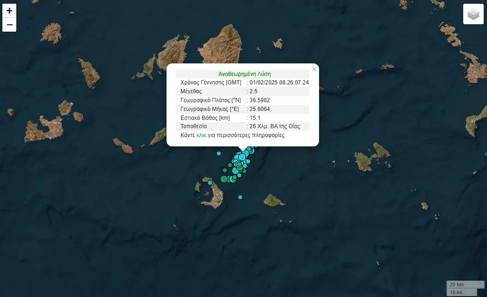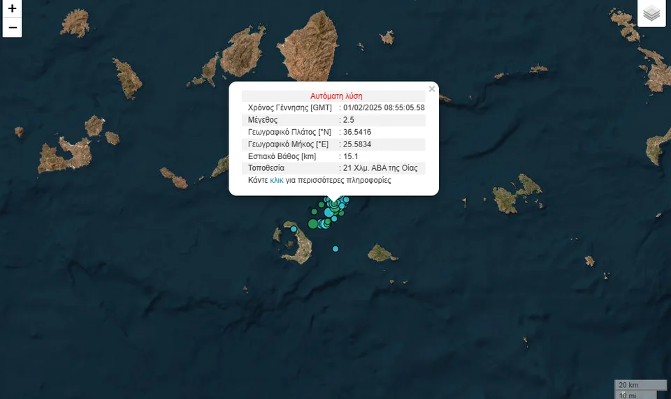 Λίγο αργότερα, σημειώθηκε και τρίτος σεισμός της τάξης των 2,5 Ρίχτερ, 21 χλμ. ανατολικά-βορειοανατολικά της Οίας.