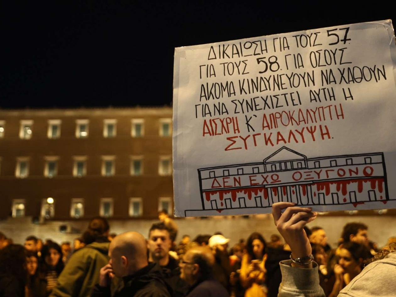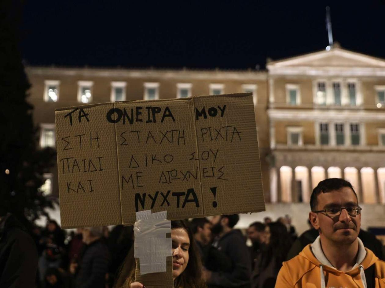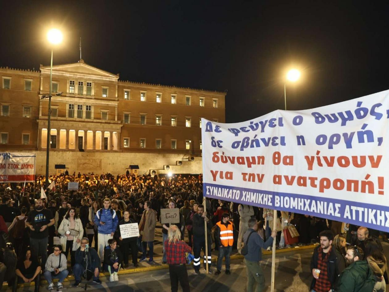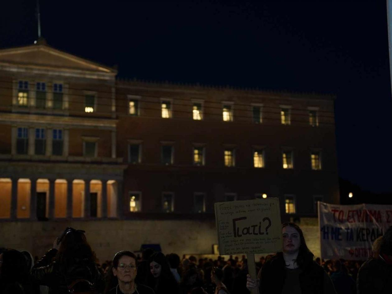 Χιλιάδες διαδηλωτές που συμμετείχαν στην πορεία των φοιτητικών συλλόγων προς τη Βουλή, ζήτησαν να αποδοθούν ευθύνες και «να μην υπάρξουν άλλα "Τέμπη"».