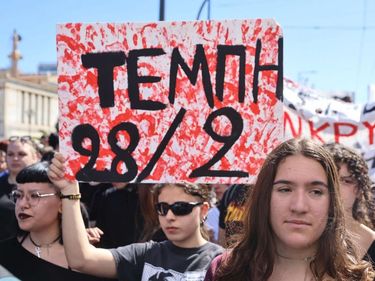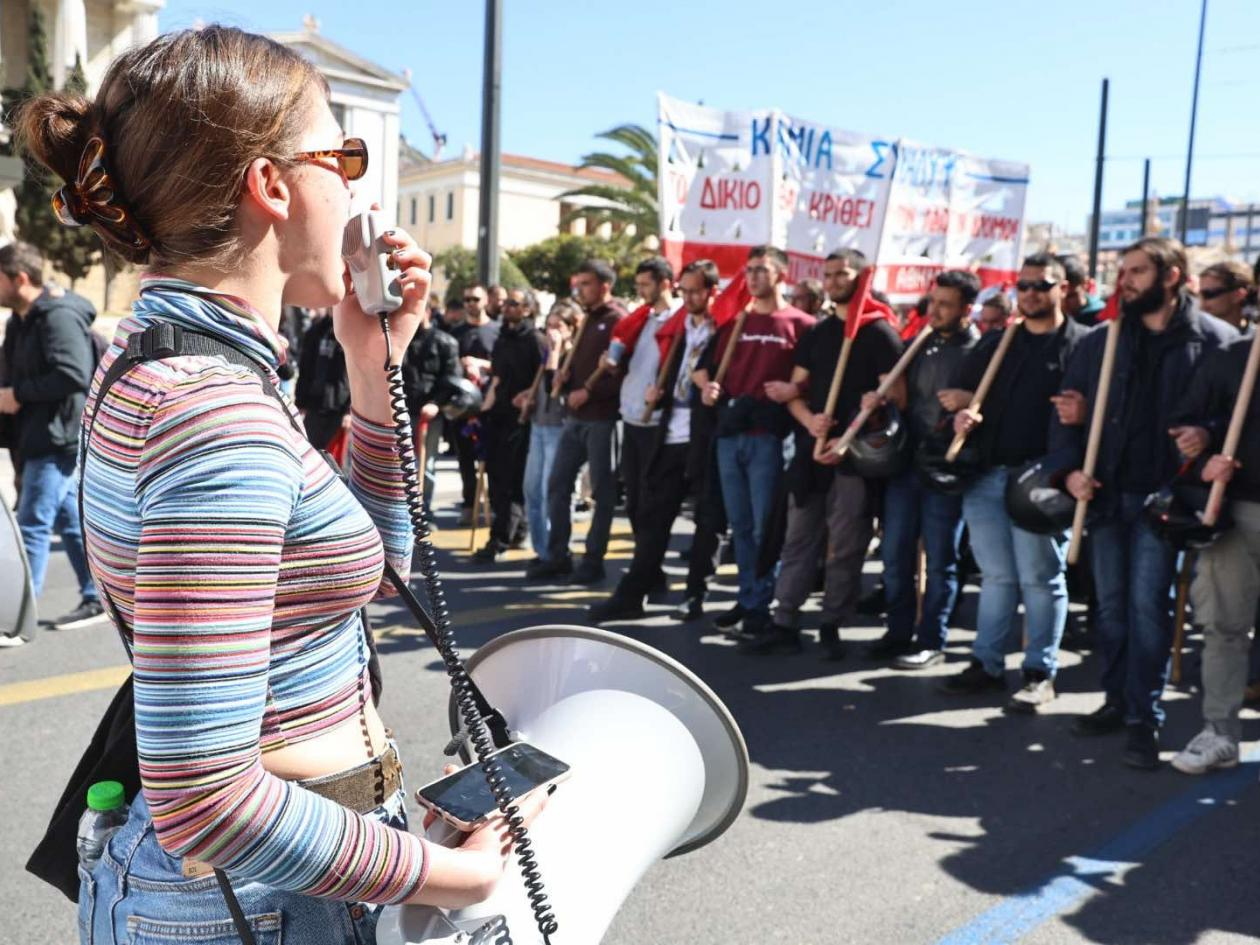 Η μητέρα 22χρονου Γιώργου Παπάζογλου, συγκίνησε το πλήθος όταν ανέφερε την ανάρτηση του καθηγητή του στο Παν/μιο, πως «ο αδικοχαμένος νεαρός ποτέ δεν έμαθε για το 10 που πήρε με το σπαθί του γιατί κάτι τον σταμάτησε στα Τέμπη».