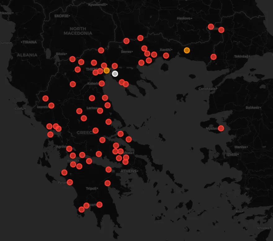 Χάρτης με τα σημεία που έχουν στηθεί μπλόκα