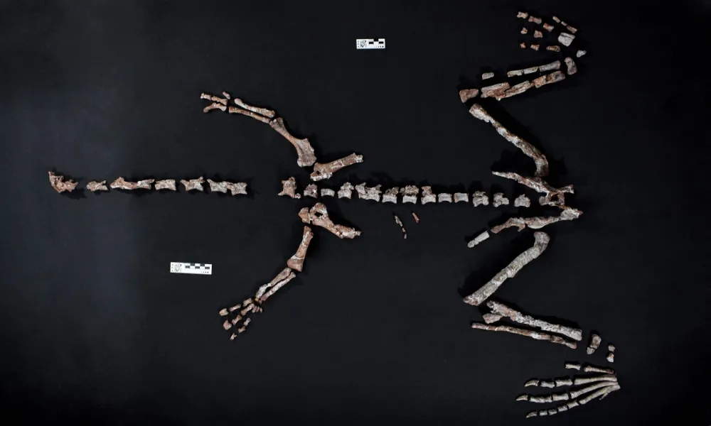 Ο σκελετός που βρέθηκε αποτελείται από τμήμα του κρανίου, πλήρη σπονδυλική στήλη ως την ουρά και σχεδόν ολόκληρα μπροστινά και πίσω άκρα.