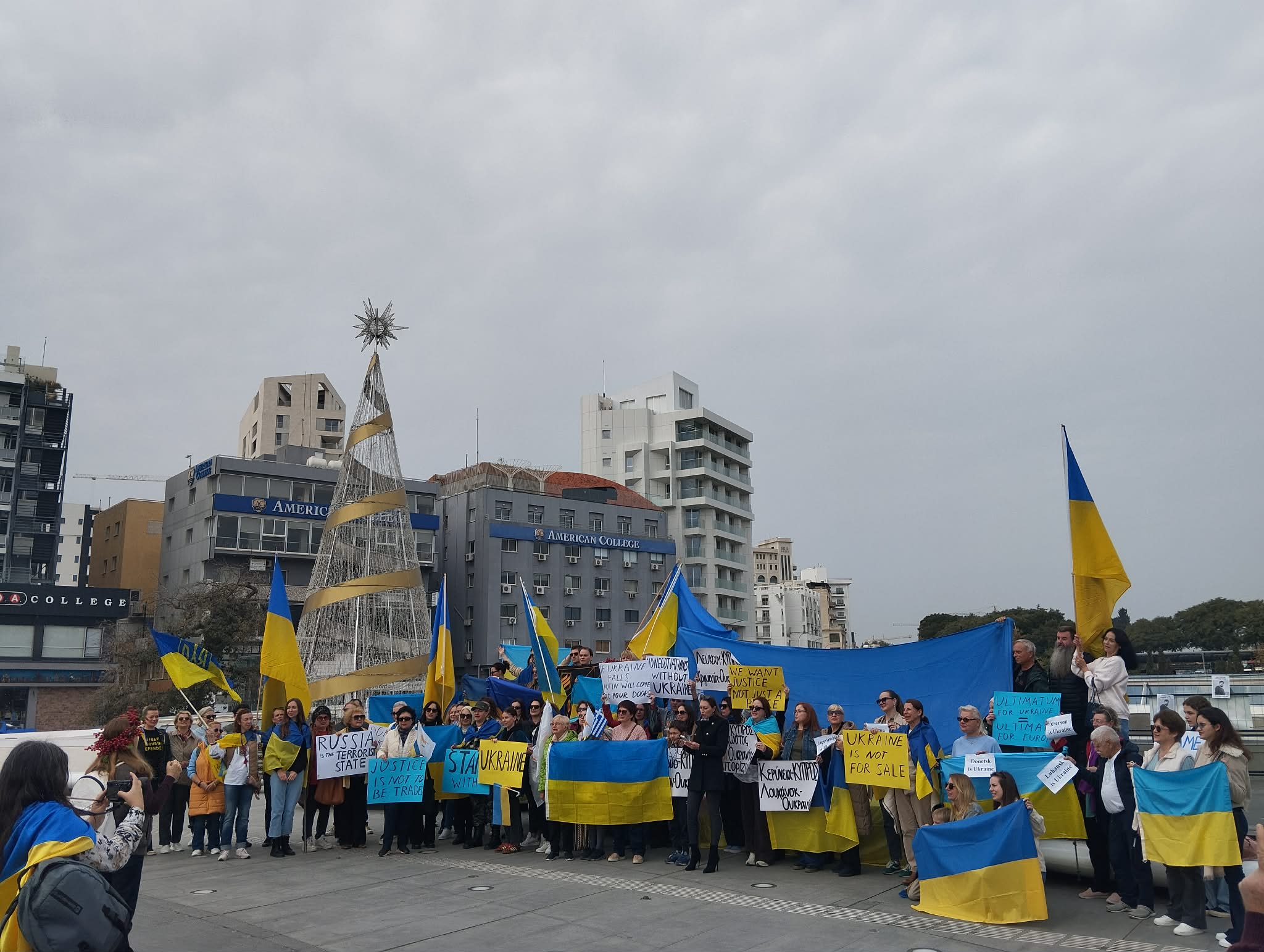 Παράλληλα, με αφορμή την τελετή έναρξης της Κυπριακής Προεδρίας της ΕΕ, ομάδα Ουκρανών πολιτών πραγματοποίησε το πρωί συγκέντρωση στην Πλατεία Ελευθερίας.
