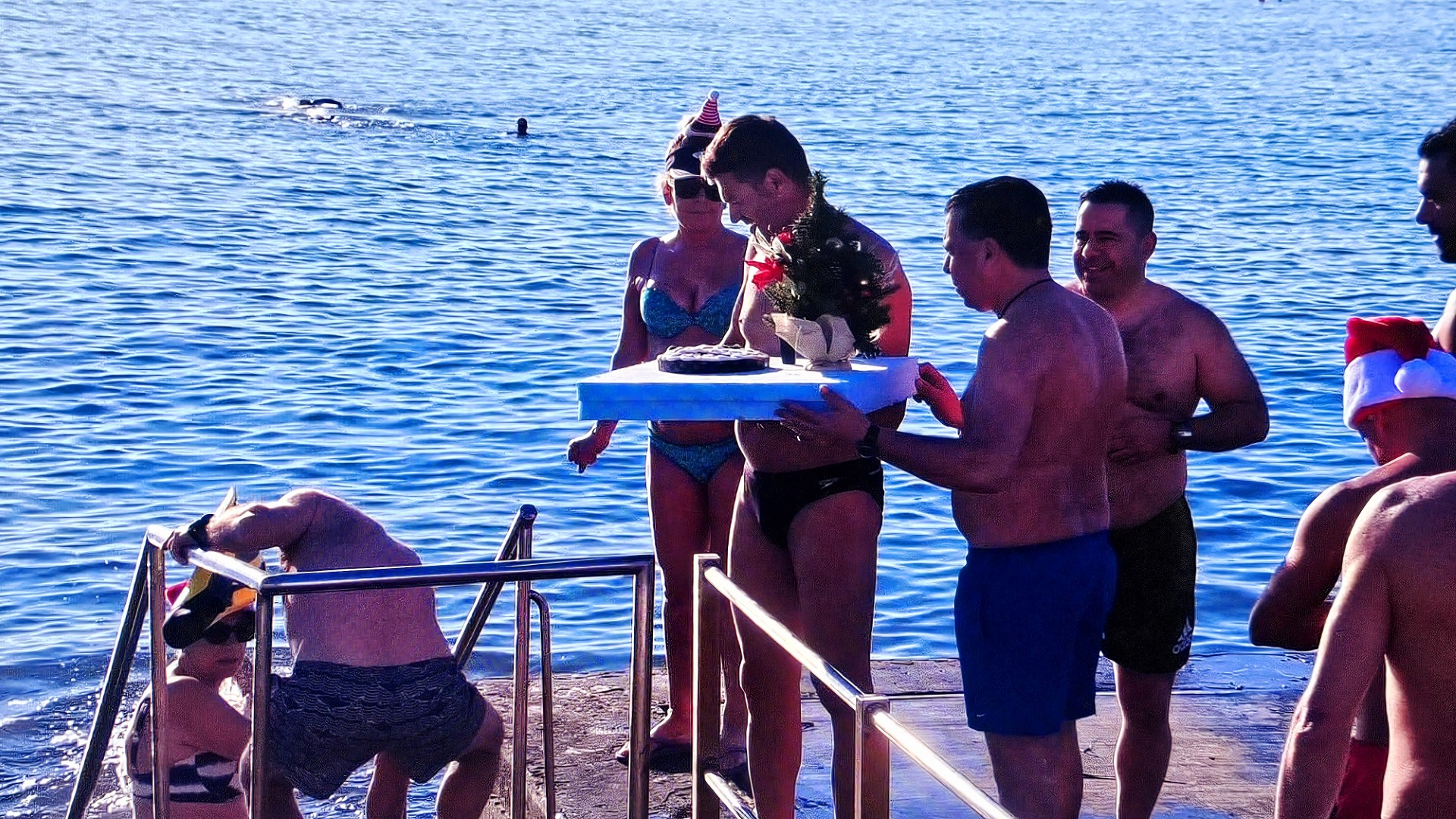 Ο βουλευτής του ΑΚΕΛ Πάφου Βαλεντίνος Φακοντής χειμερινός κολυμβητής και ο ίδιος παρέστη στην εκδήλωση και ευχήθηκε «Χρόνια Πολλά» και Καλό νέο έτος σε όλον τον κόσμο με υγεία χωρίς πολέμους. Το θέαμα της κοπής της βασιλόπιττας μέσα στην θάλασσα είναι μοναδικό και δηλώνει την νέα έναρξη της κολυμβητικής περιόδου για το 2025, όπως είπε. Ευχήθηκε τέλος όπως το 2025 να είναι ο χρόνος που θα φέρει την ειρήνη και την επανένωση στην πατρίδα μας.