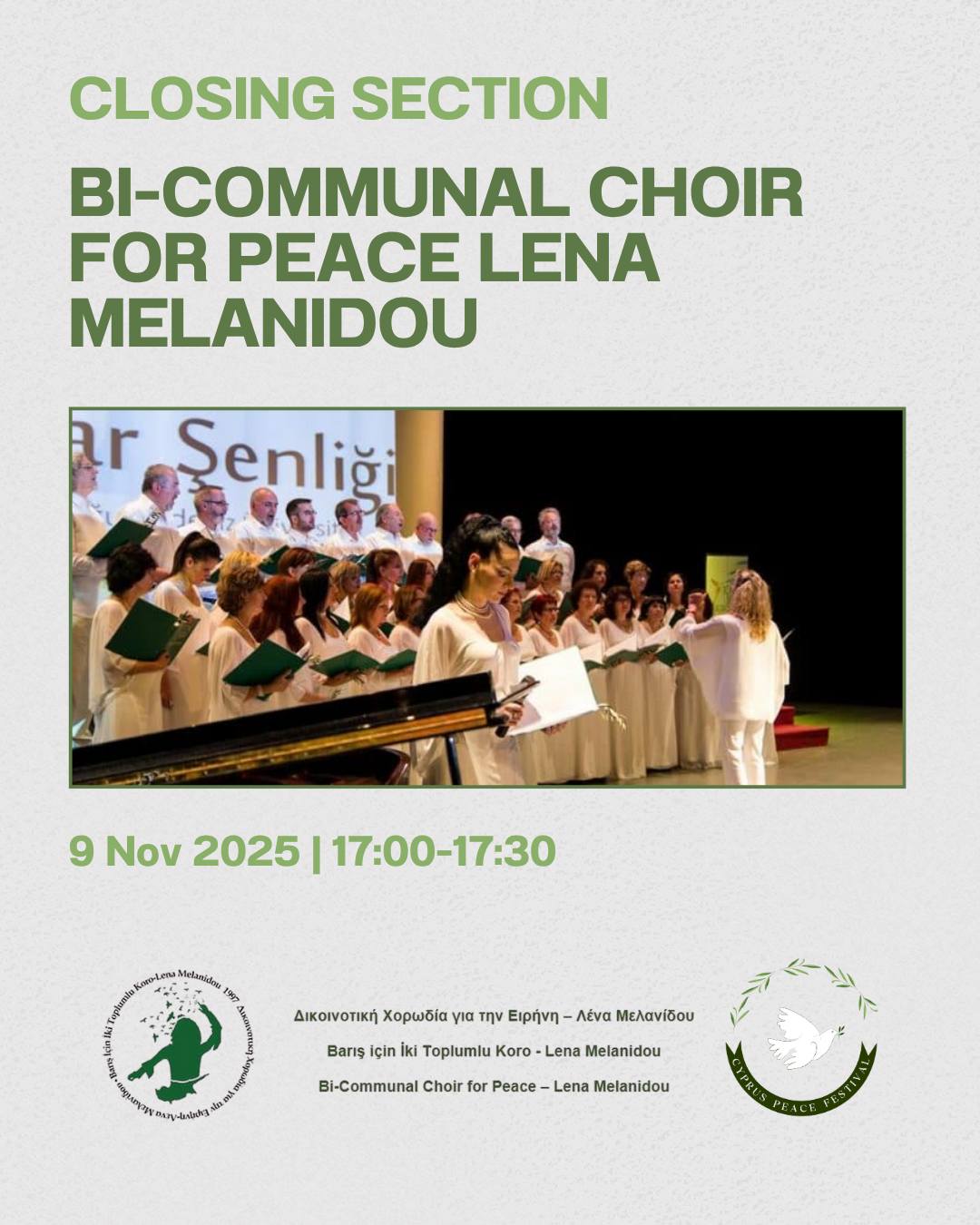 Το φεστιβάλ θα ολοκληρωθεί με τη Δικοινοτική Χορωδία για την Ειρήνη – Λένα Μελανίδου, σε τρεις γλώσσες: ελληνικά – τουρκικά – αγγλικά.