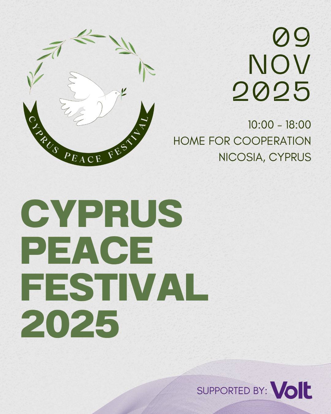 Τη διεξαγωγή του πρώτου Cyprus Peace Festival στο Σπίτι της Συνεργασίας, ανακοίνωσε η ομάδα που το διοργανώνει, με τη στήριξη του Volt Κύπρου, σηματοδοτώντας την έναρξη μιας νέας πρωτοβουλίας για την ειρήνη και τη συνύπαρξη στην Κύπρο.