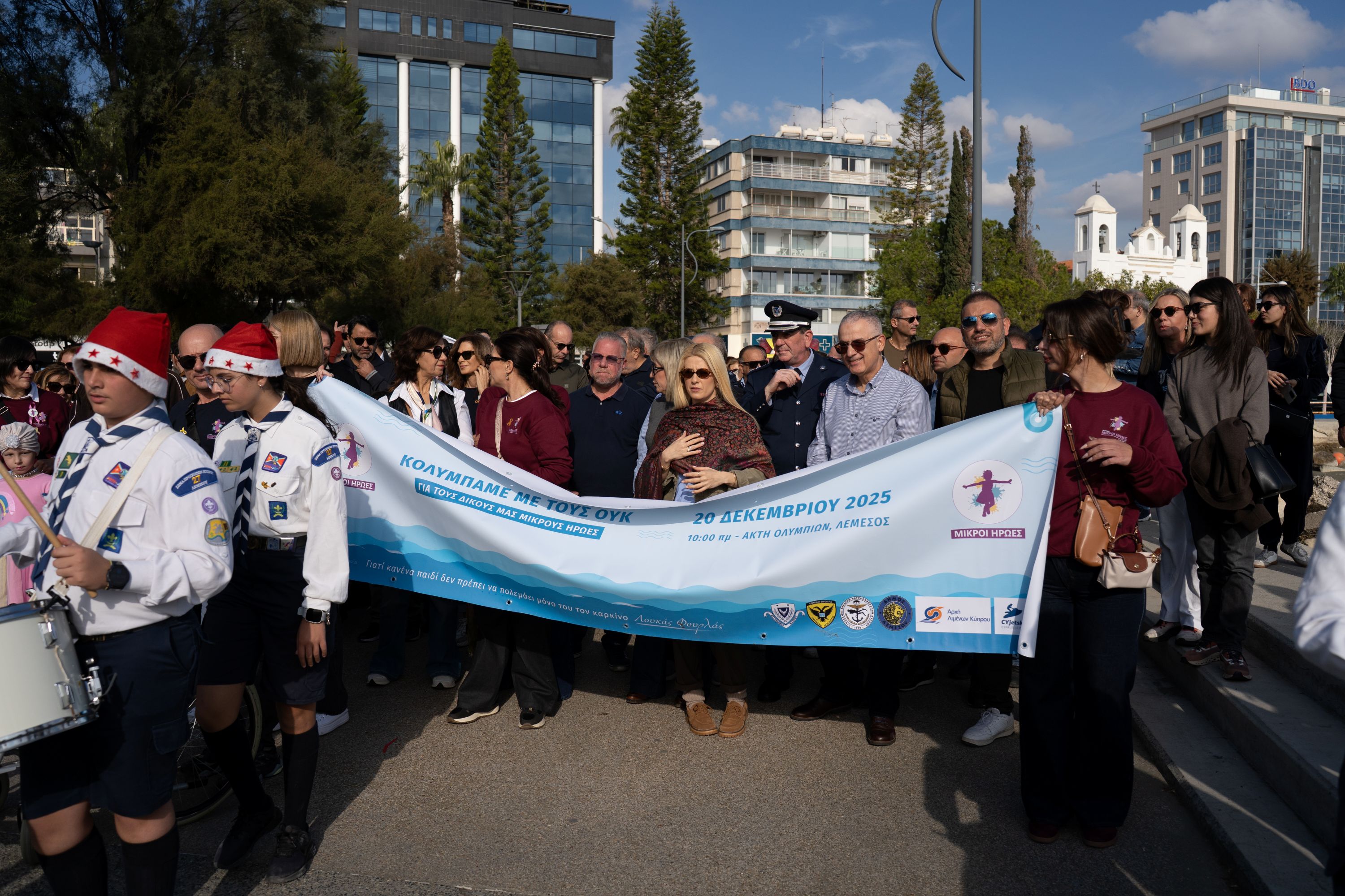 Μήνυμα στήριξης και αισιοδοξίας έστειλαν για 9η χρονιά οι συμμετέχοντες και όσοι βρέθηκαν το πρωί του Σαββάτου στην παραλία της Λεμεσού, όπου πραγματοποιήθηκε η εκδήλωση – θεσμός «Κολυμπάμε με τους ΟΥΚ για τους δικούς μας Μικρούς Ήρωες. Στην εκδήλωση έδωσαν το παρών τους ο Υπουργός Εξωτερικών Κωνσταντίνος Κόμπος, ο Υπουργός Υγείας Νεόφυτος Χαραλαμπίδης, η Πρόεδρος της Βουλής Αννίτα Δημητρίου, η ηγεσία της Ε.Φ και της Αστυνομίας και εκπρόσωποι θεσμών και τοπικών φορέων.