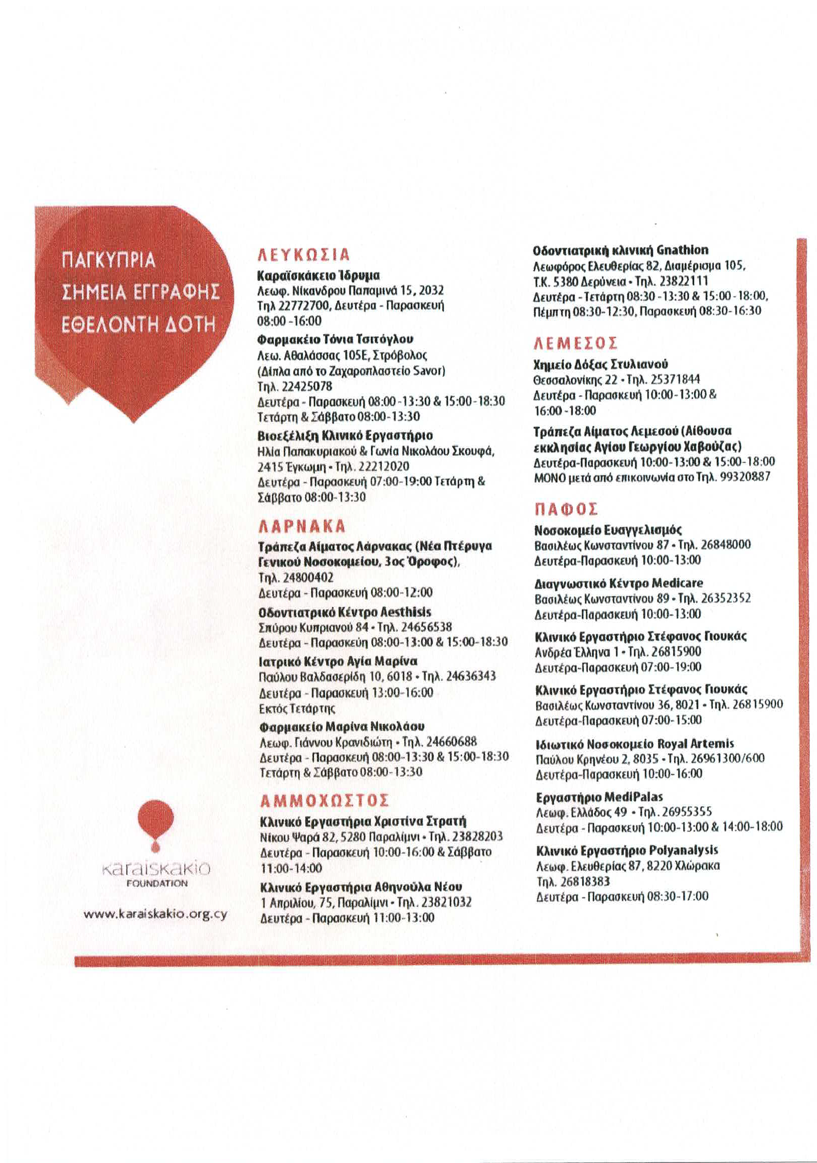 Όσοι και όσες θέλουν να βοηθήσουν μπορούν να μεταβούν στα σημεία που επισυνάπτονται και να δώσουν δείγμα. Παράλληλα, είναι πολύτιμο να διαδοθεί το μήνυμα σε φίλους, συγγενείς και γνωστούς, ώστε να μεγαλώσει η αλυσίδα της ελπίδας.